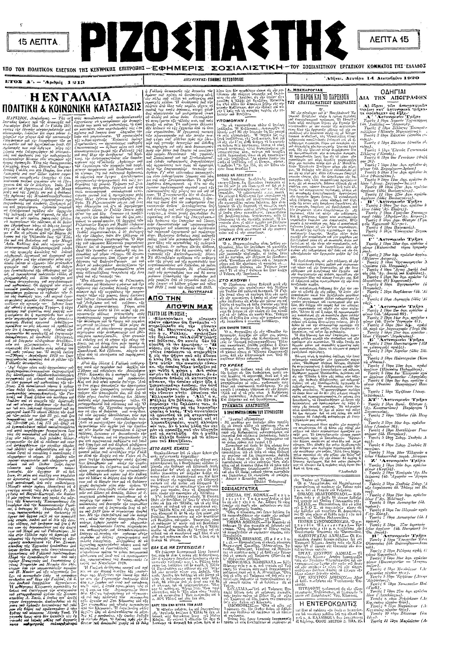 Ριζοσπάστης 14/12/1920