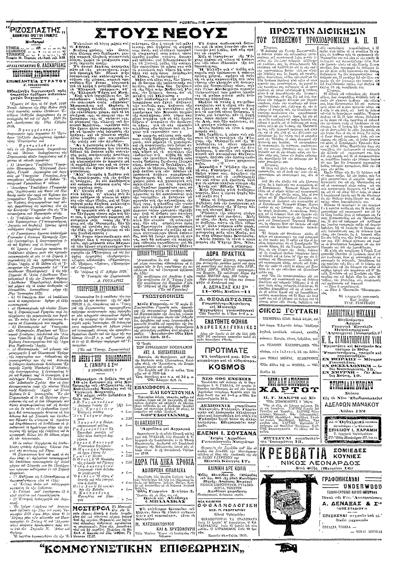 Ριζοσπάστης 25/12/1920
