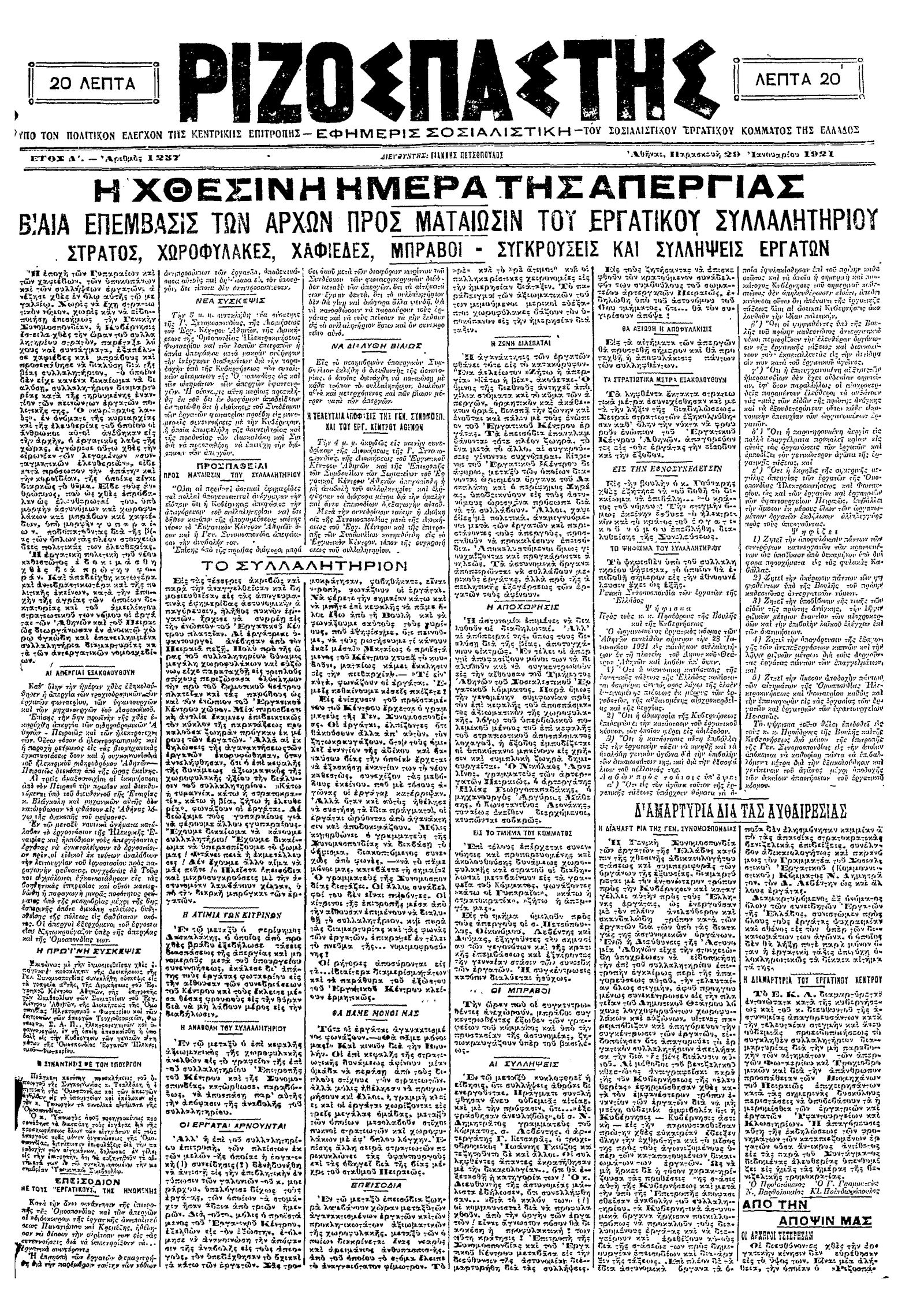 Ριζοσπάστης 29/01/1921