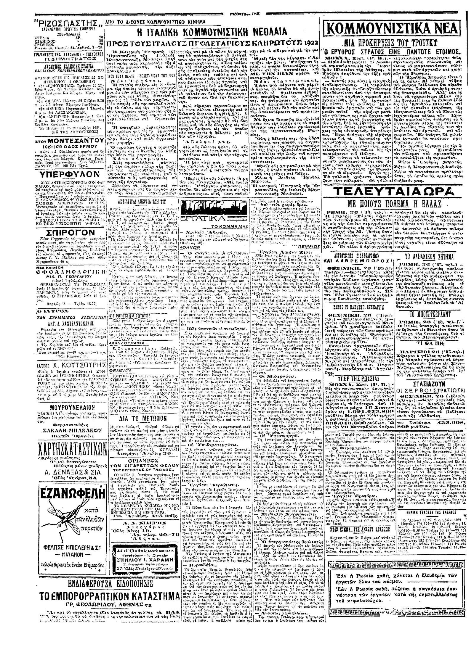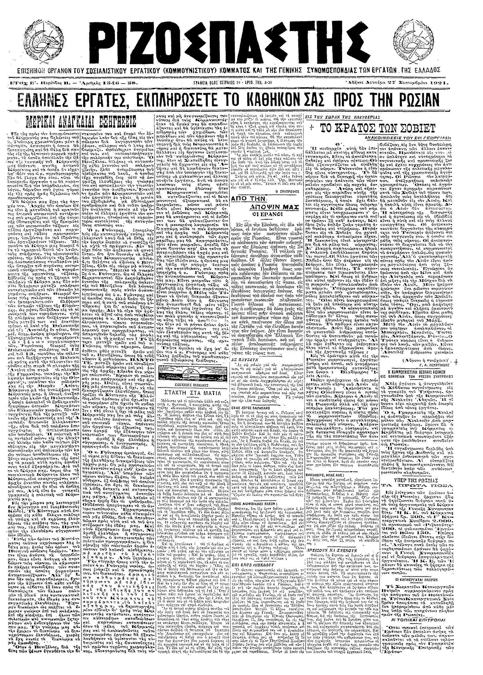 Ριζοσπάστης 27/09/1921