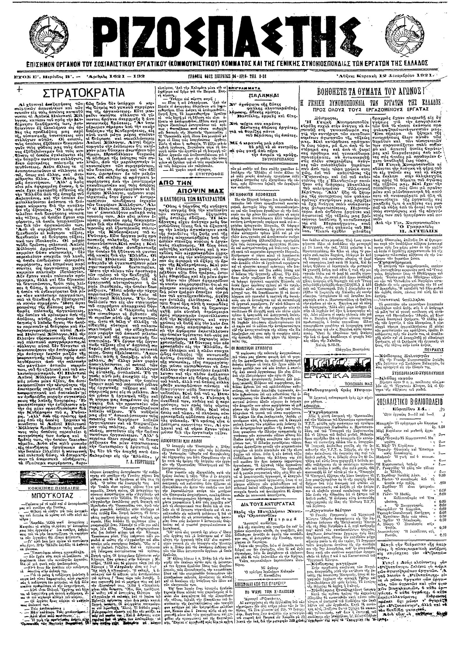 Ριζοσπάστης 12/12/1921