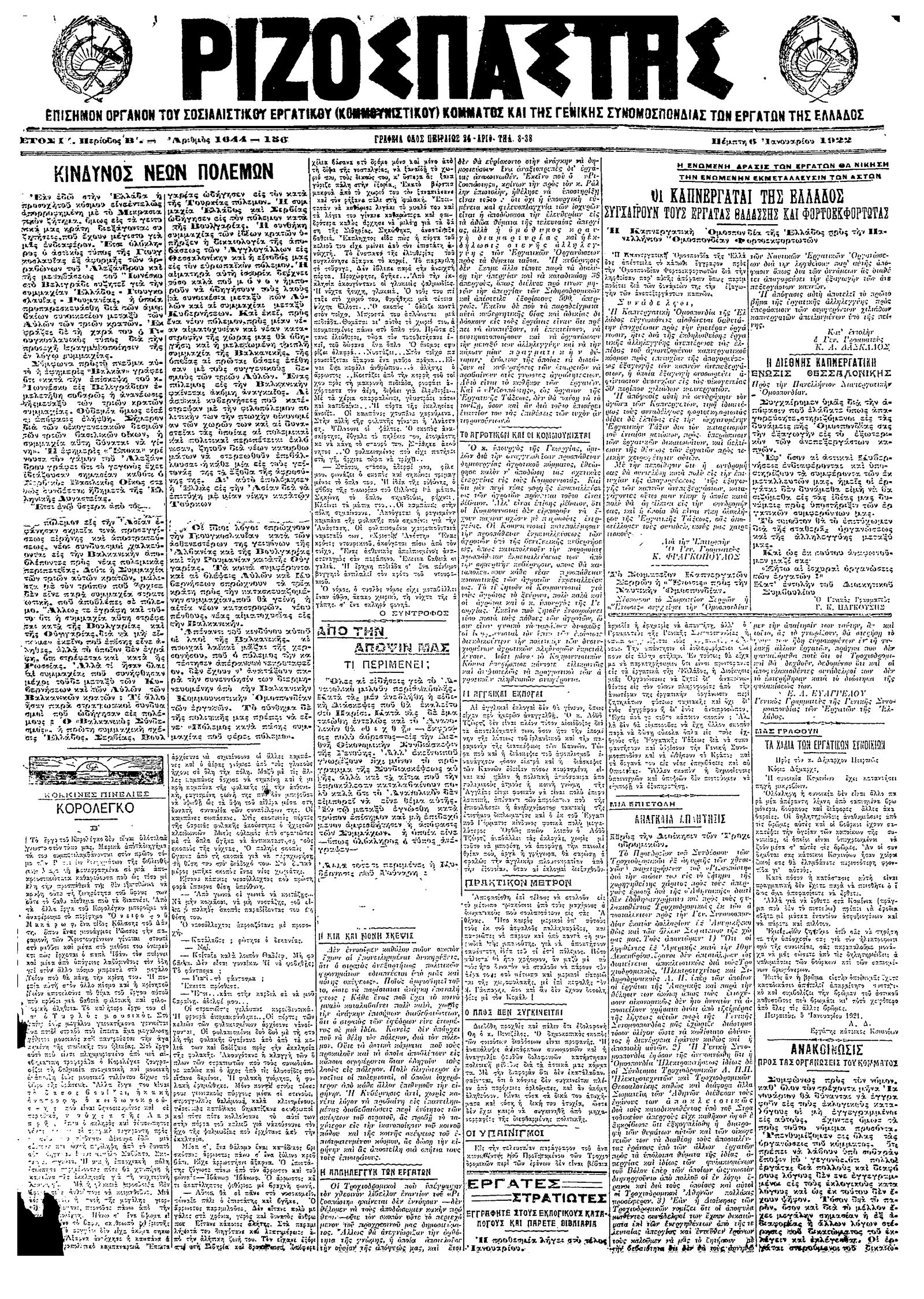 Ριζοσπάστης 06/01/1922