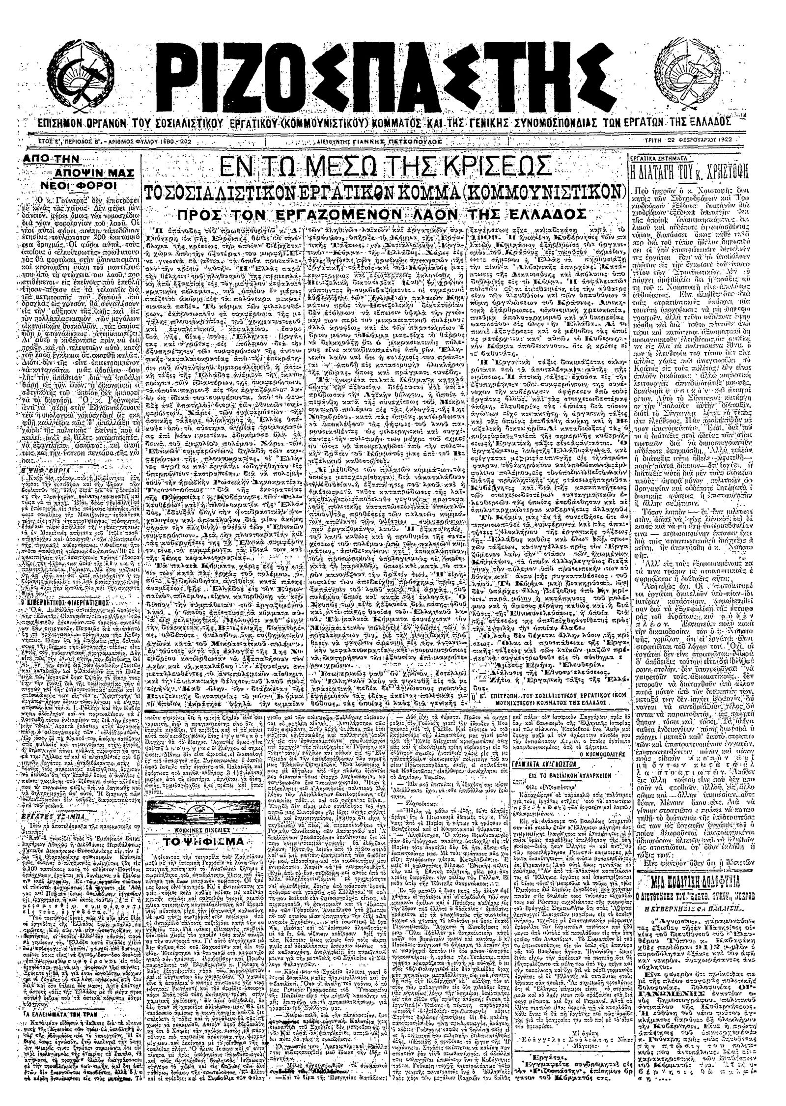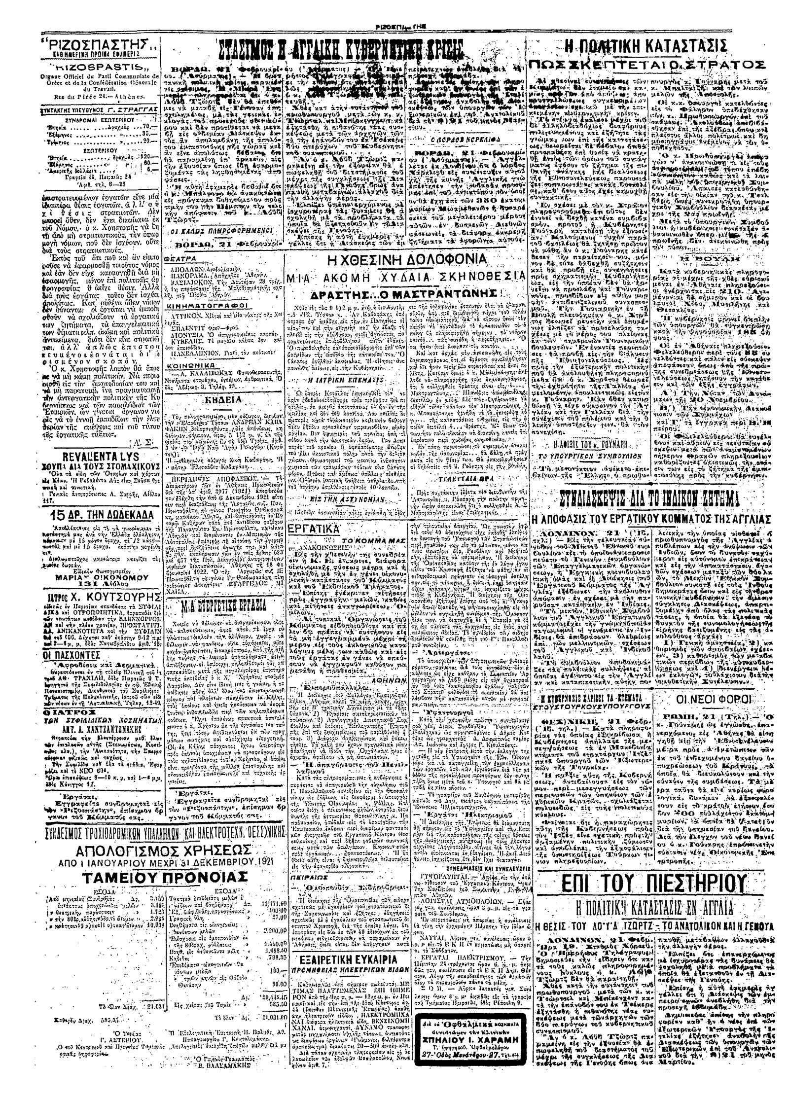 Ριζοσπάστης 22/02/1922