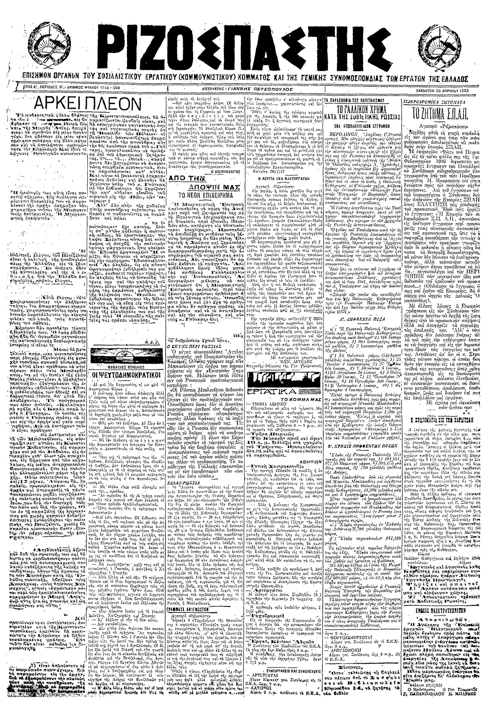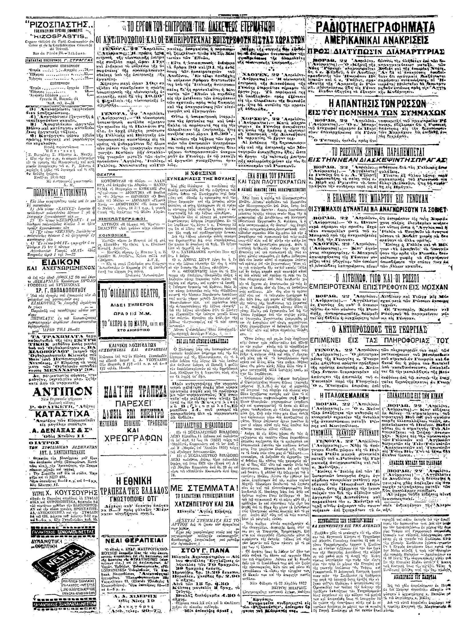 Ριζοσπάστης 23/04/1922