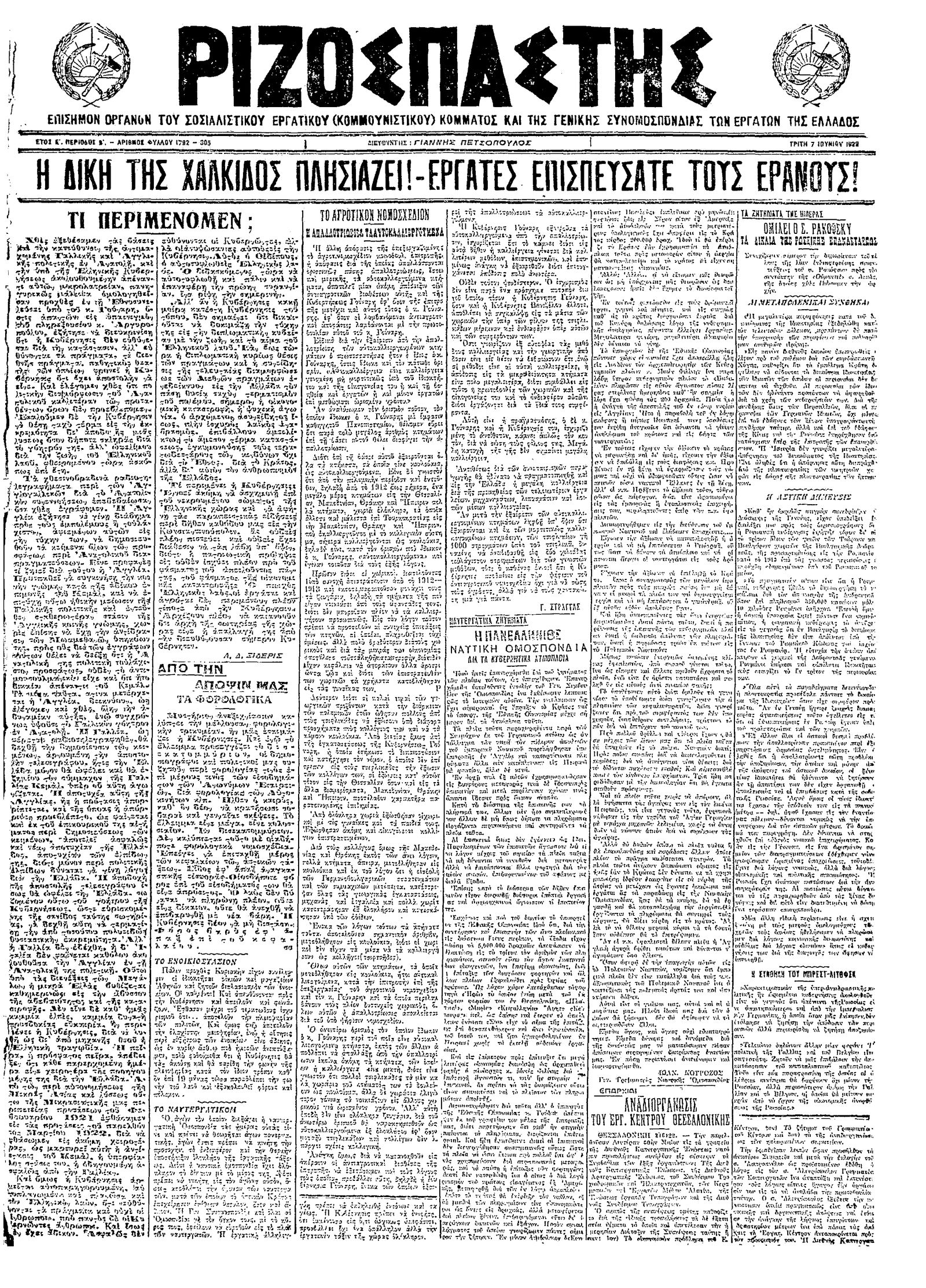 Ριζοσπάστης 07/06/1922