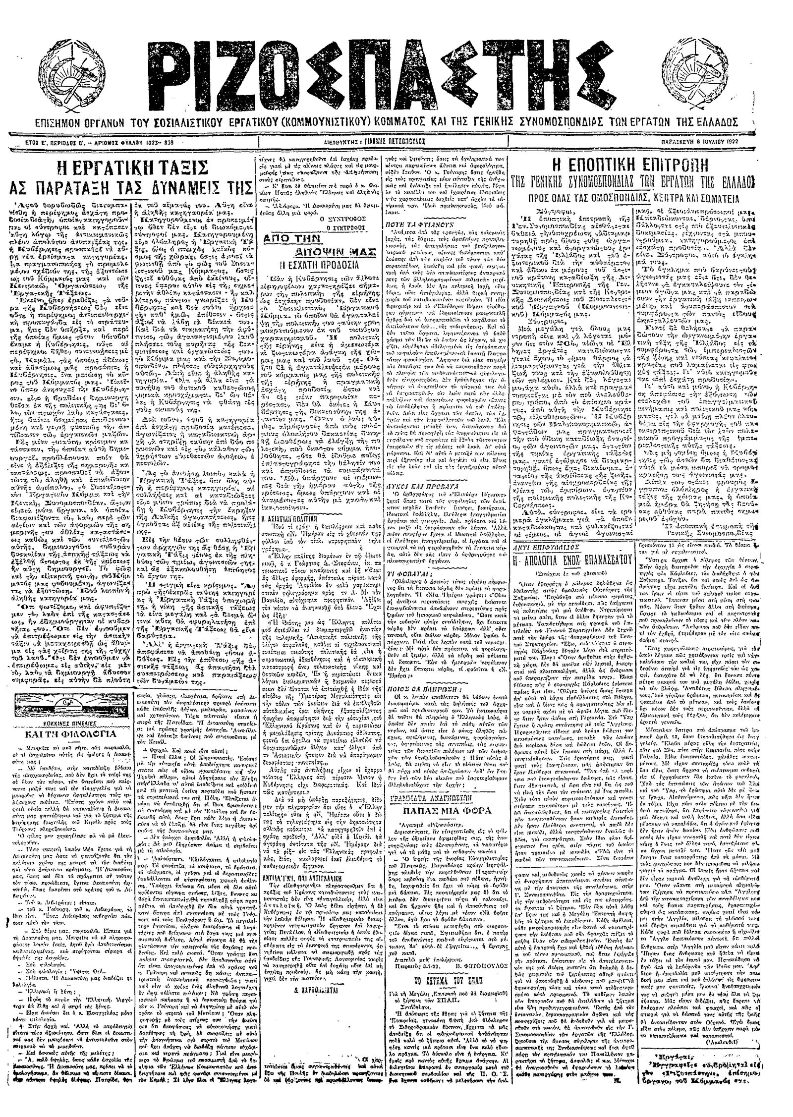 Ριζοσπάστης 08/07/1922