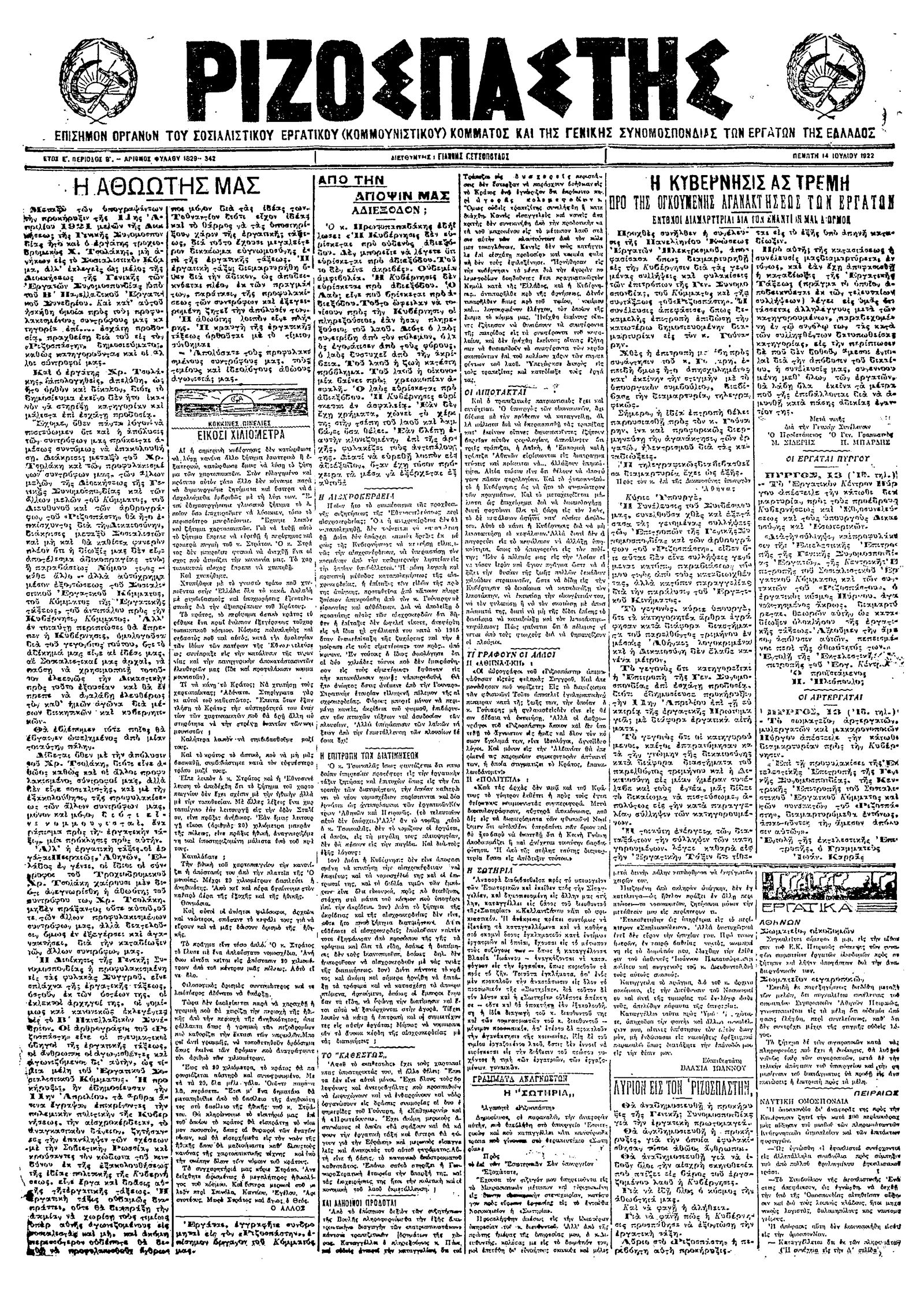 Ριζοσπάστης 14/07/1922