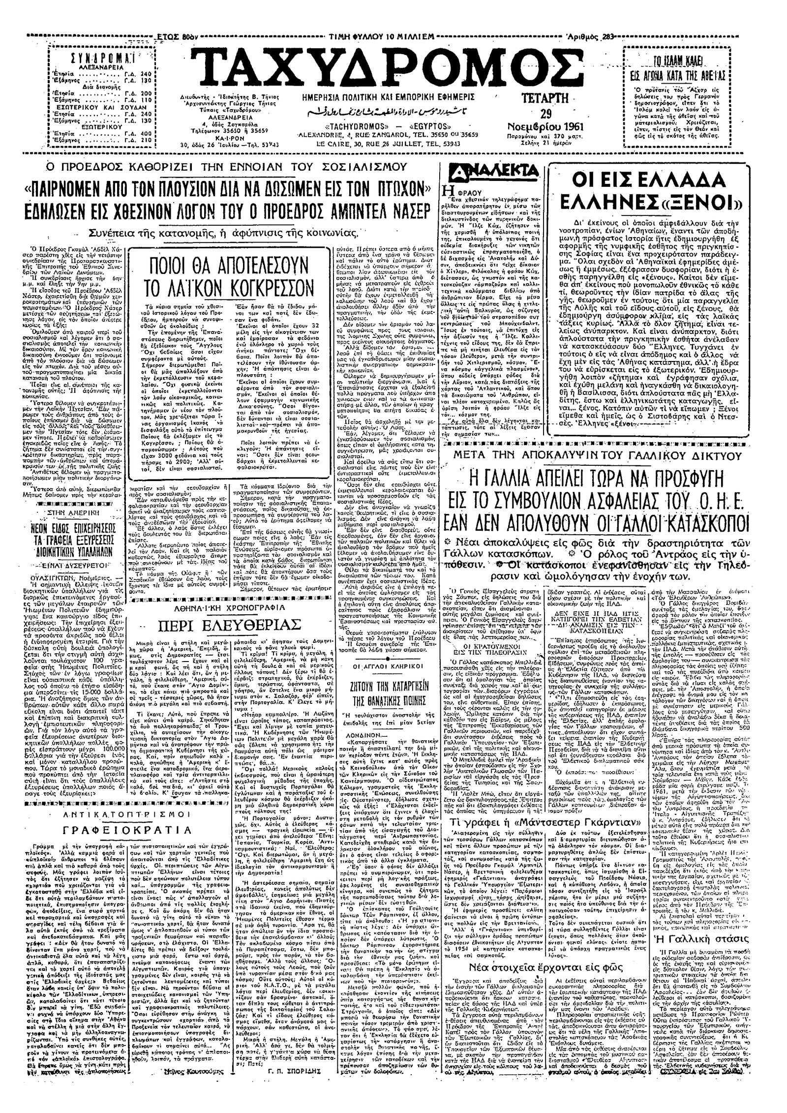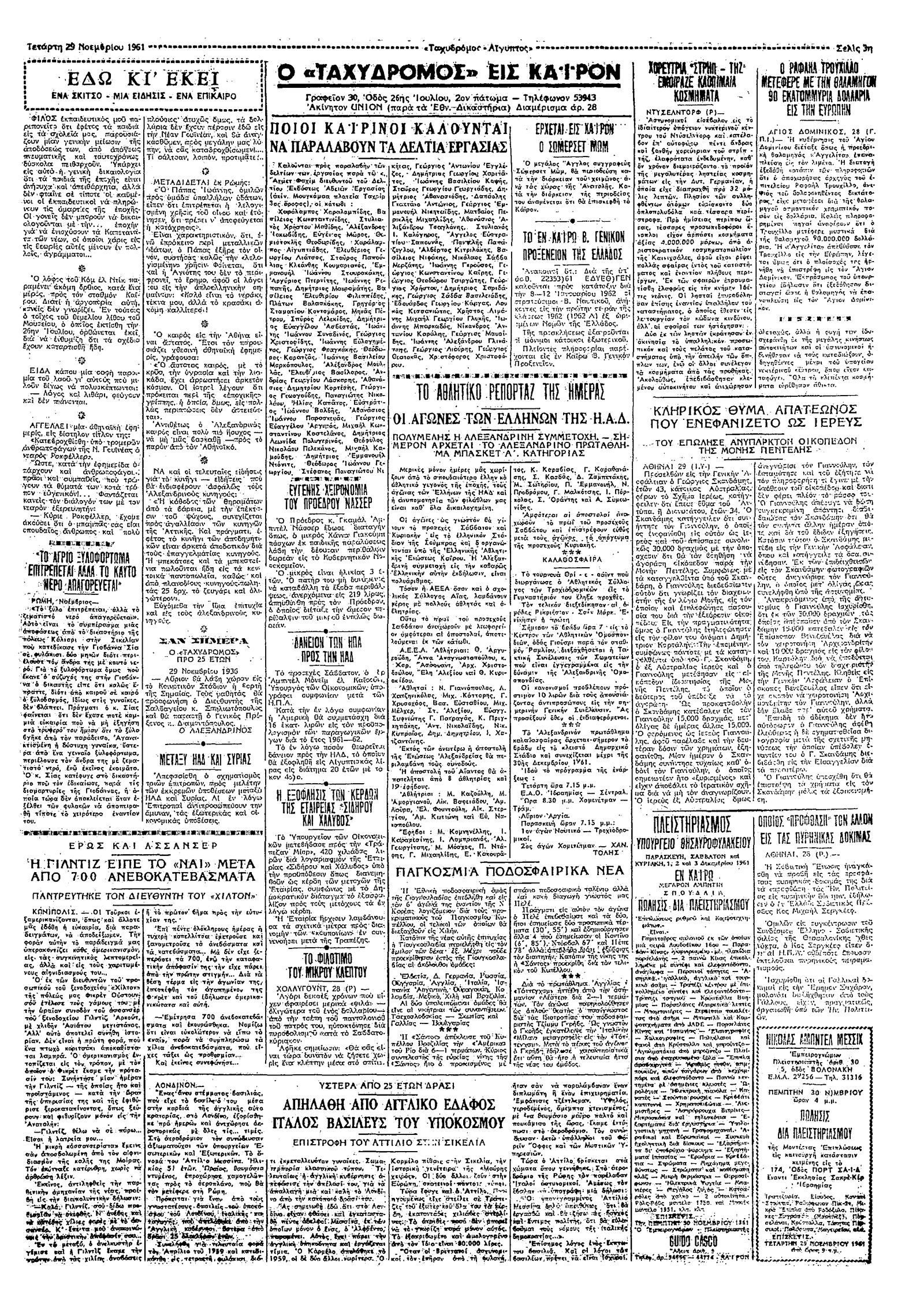 Ταχυδρόμος 29/11/1961