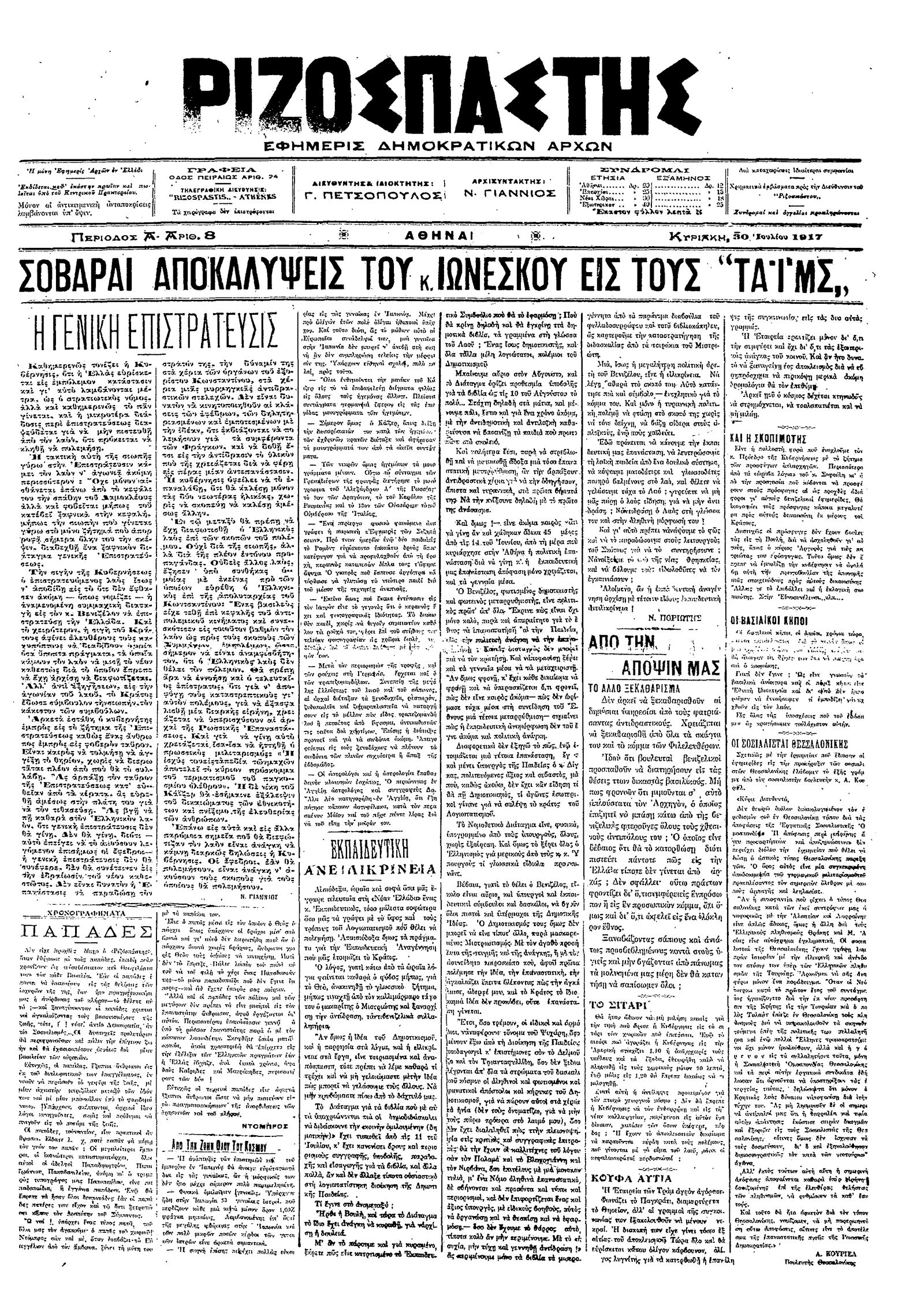 Ριζοσπάστης 30/07/1917