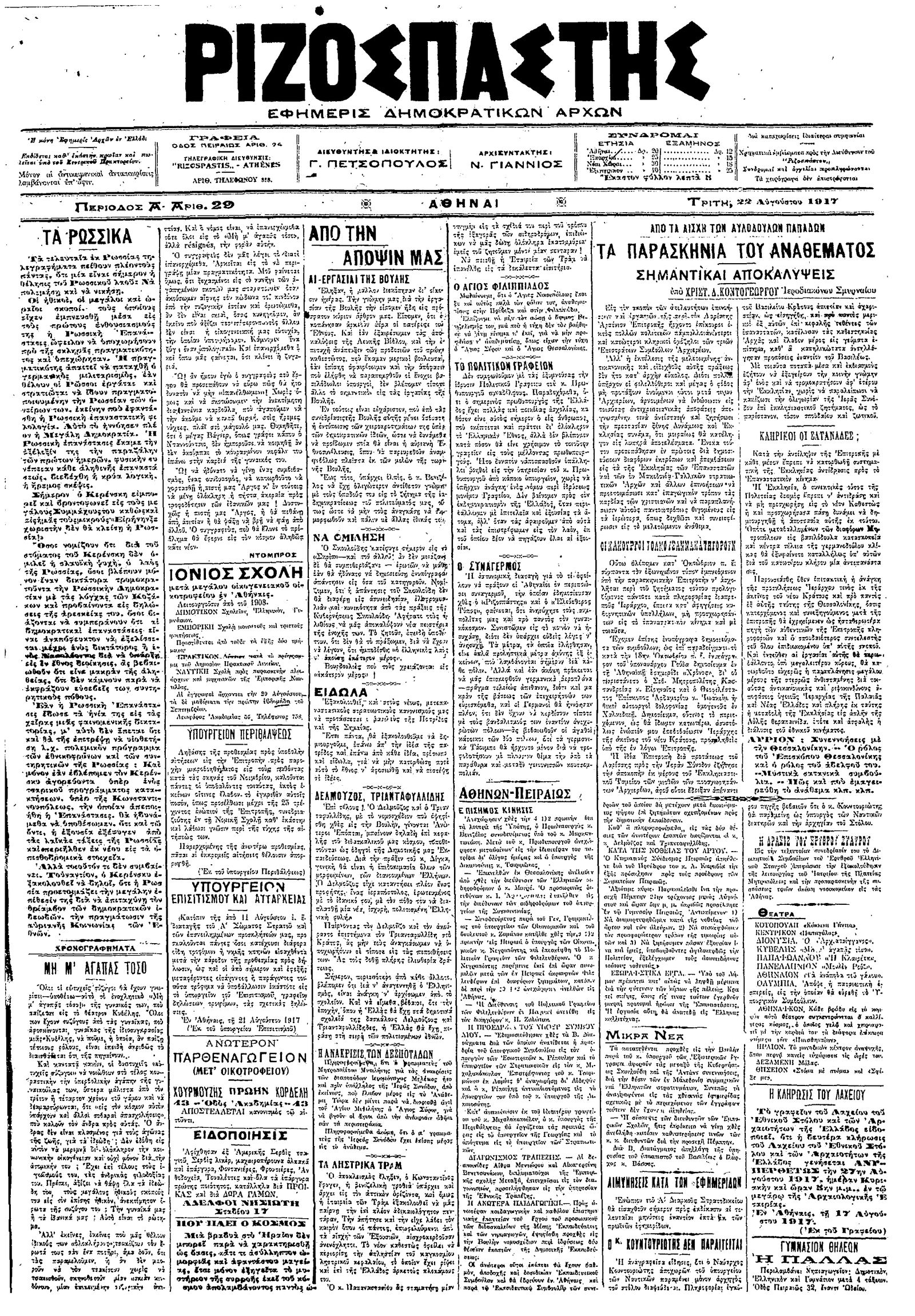 Ριζοσπάστης 22/08/1917