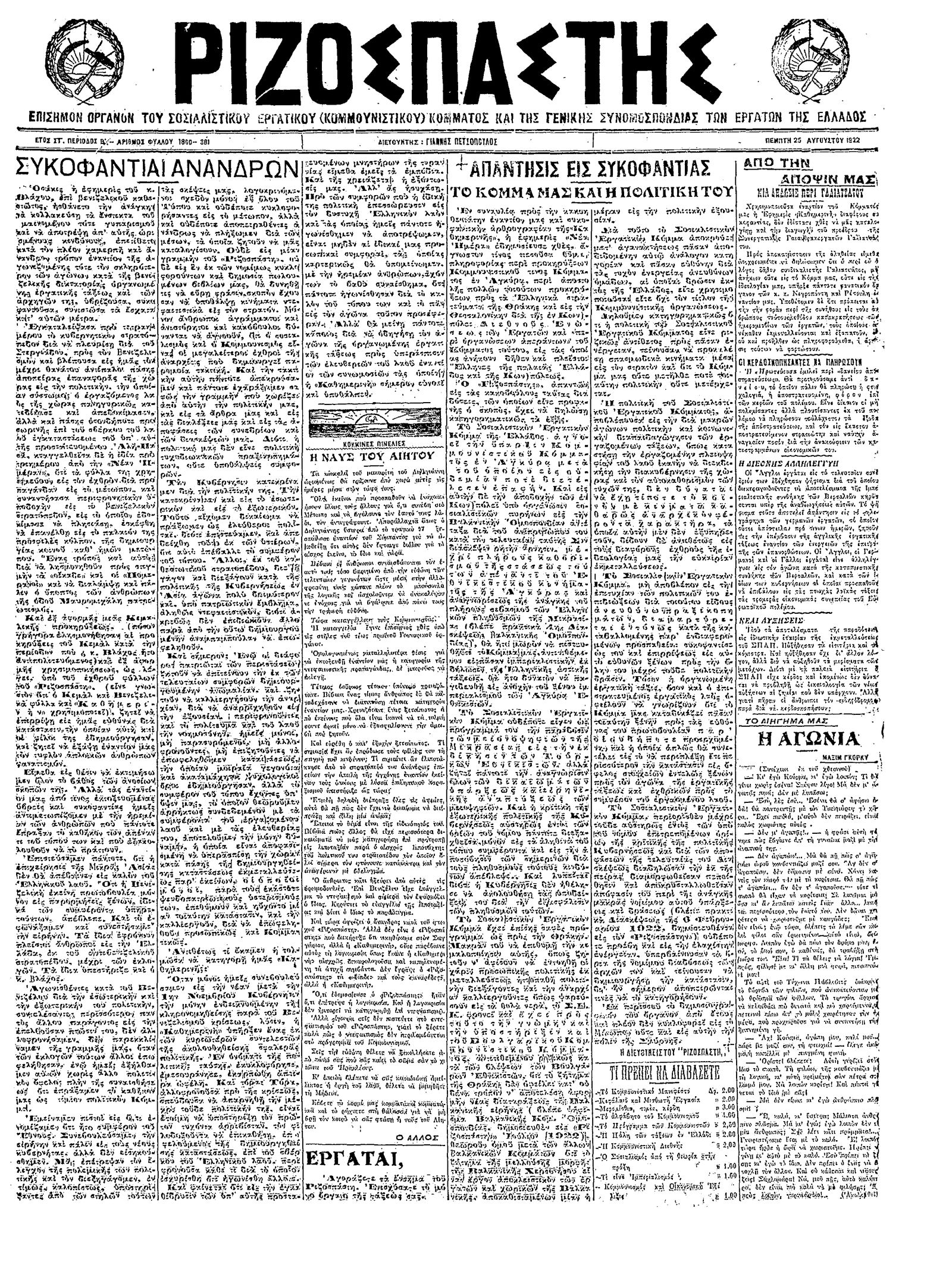 Ριζοσπάστης 25/08/1922