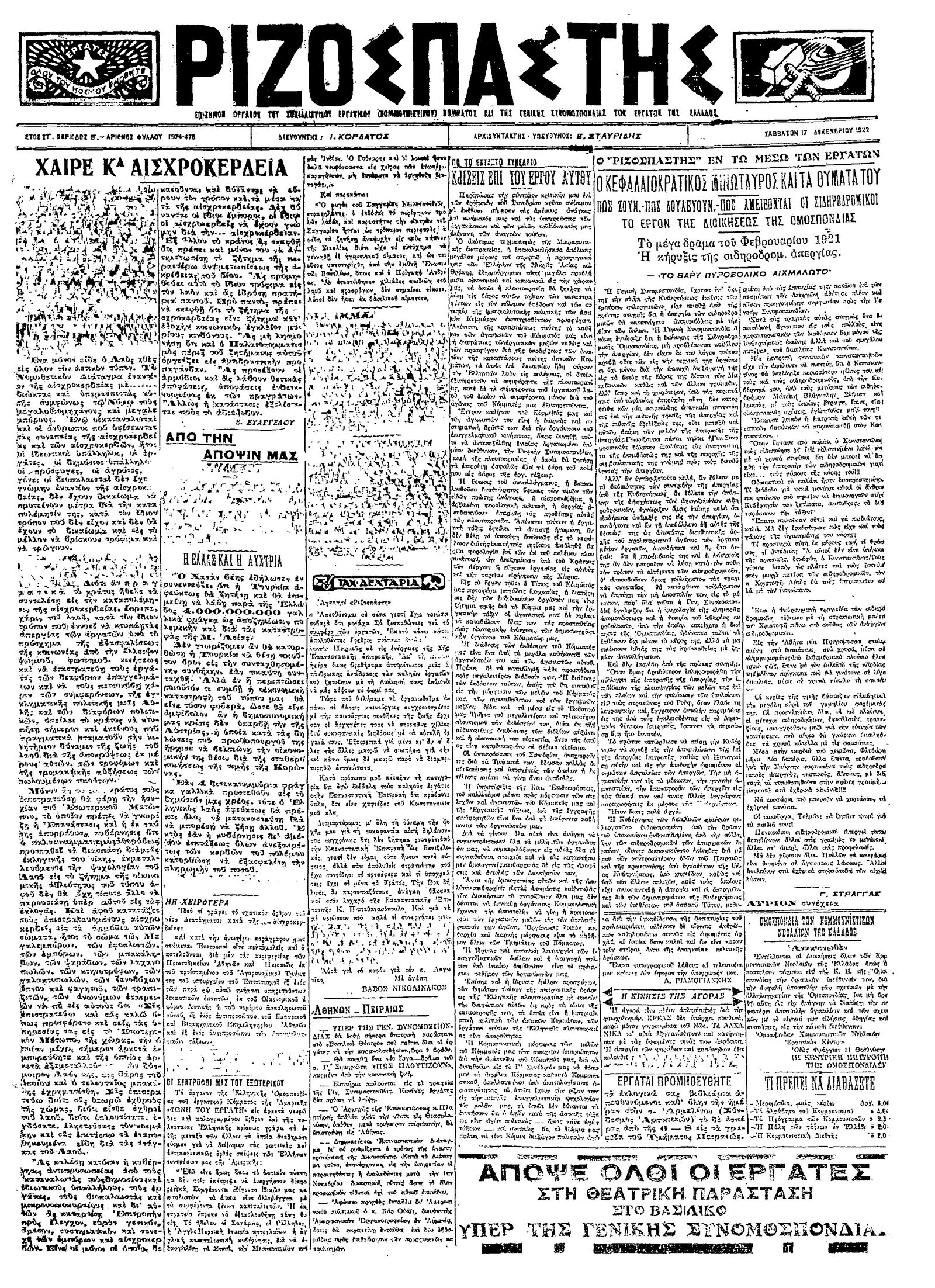 Ριζοσπάστης 17/12/1922