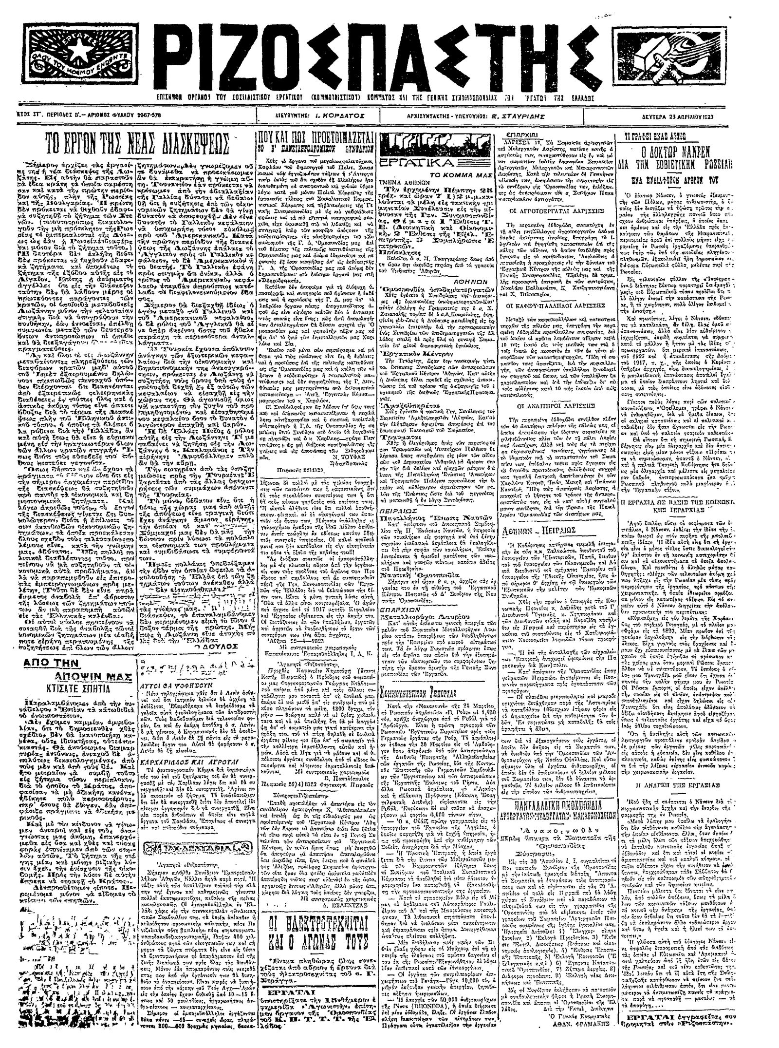 Ριζοσπάστης 23/04/1923