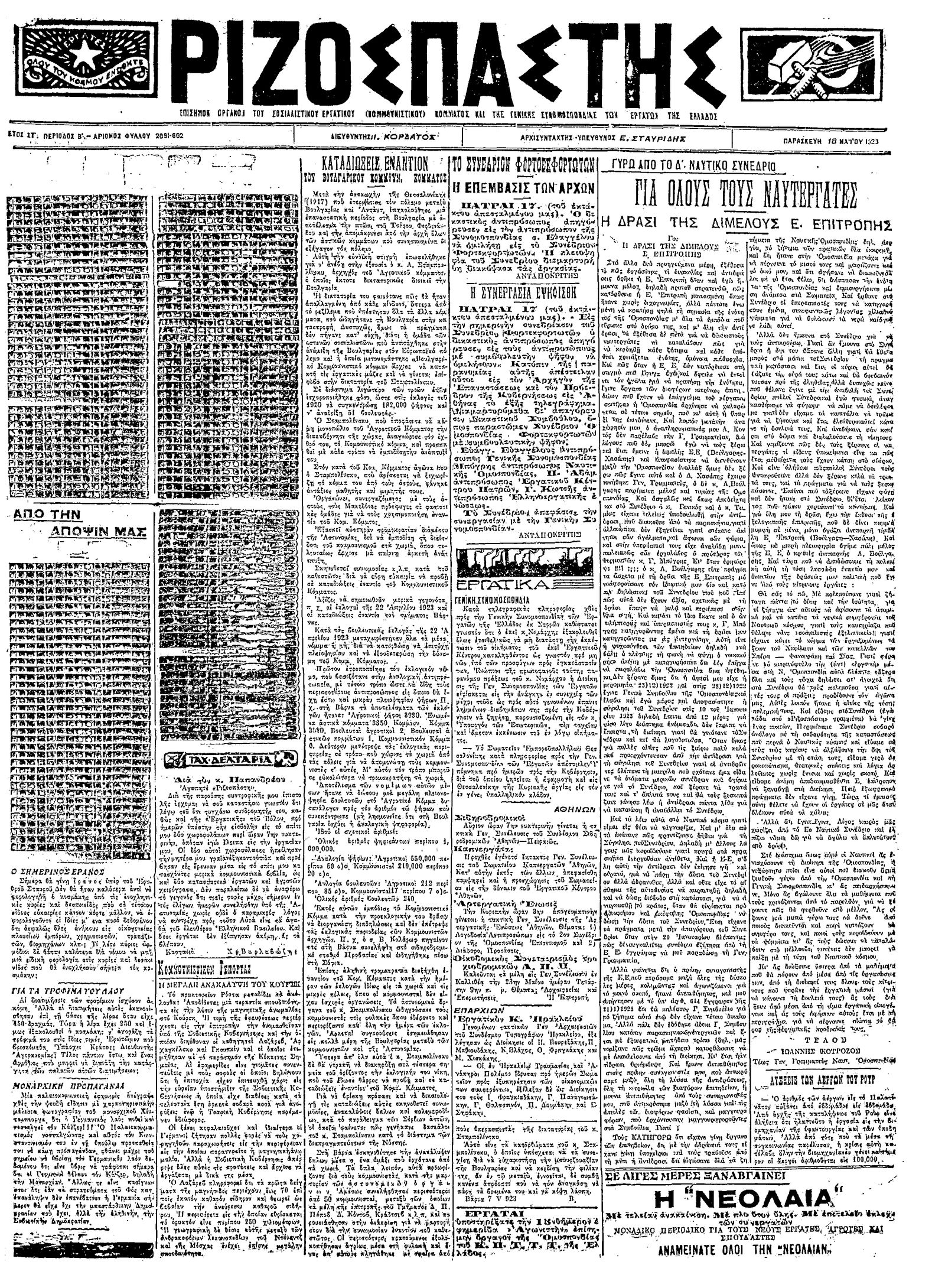 Ριζοσπάστης 18/05/1923