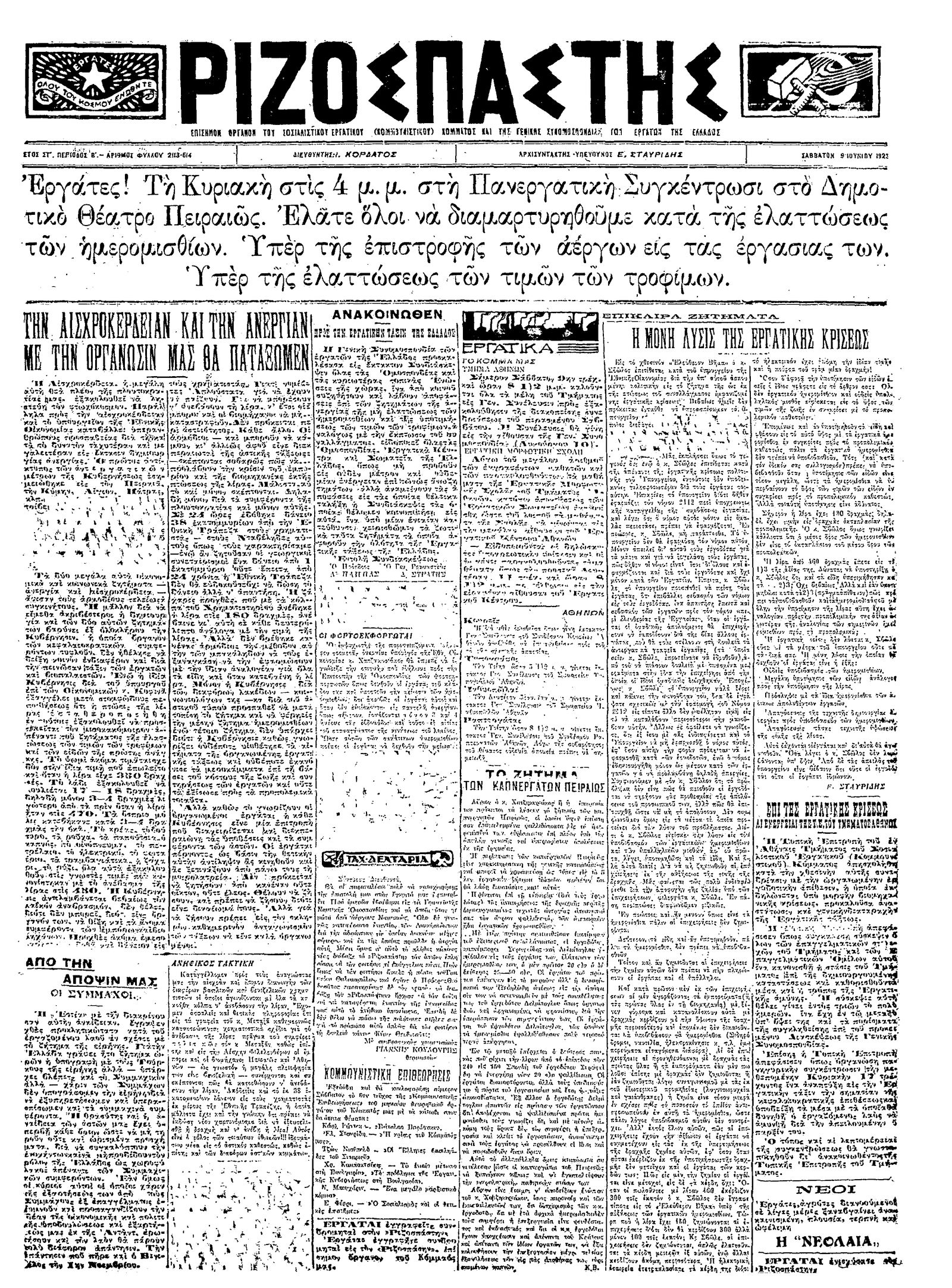 Ριζοσπάστης 09/06/1923