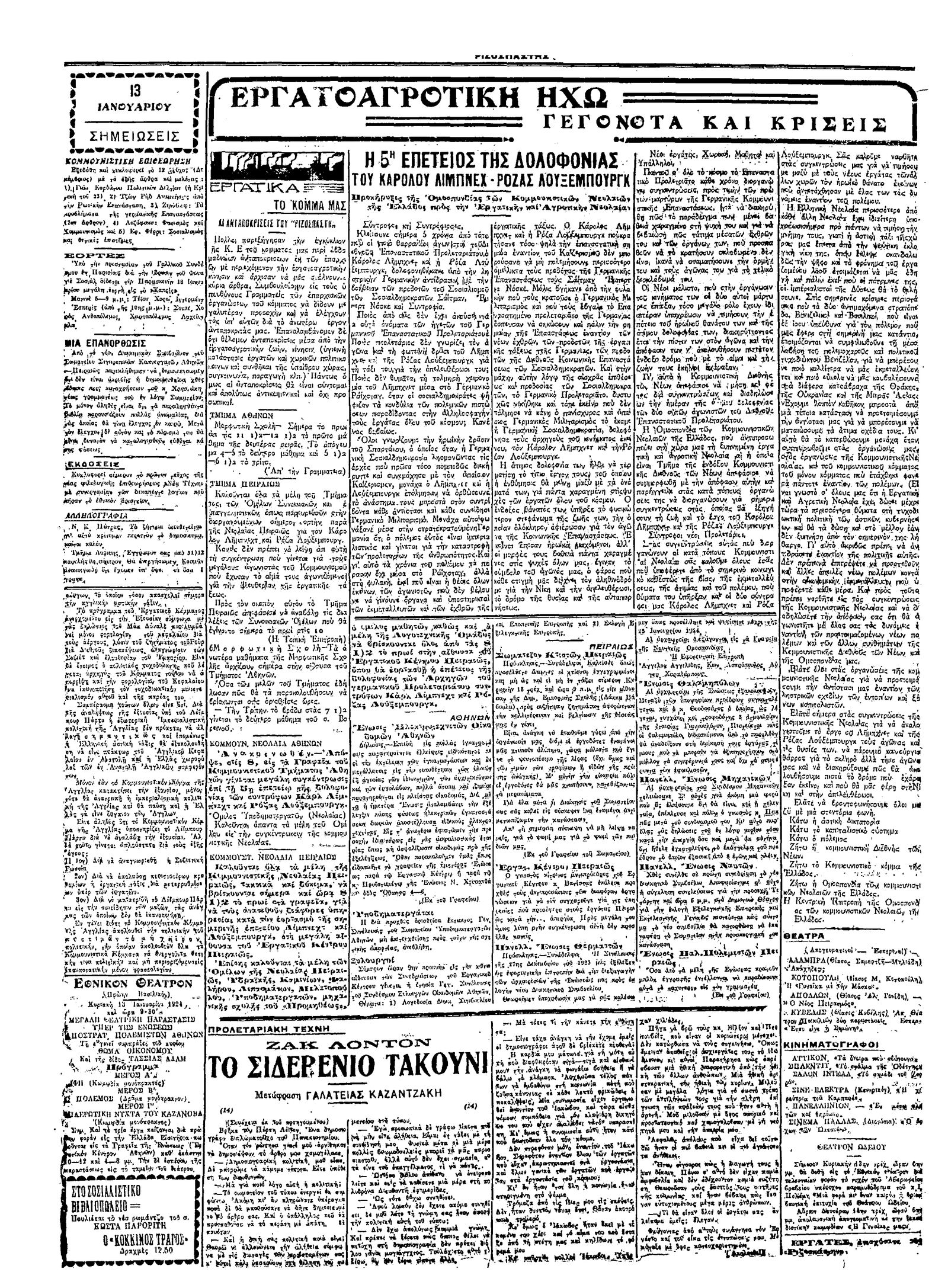 Ριζοσπάστης 13/01/1924