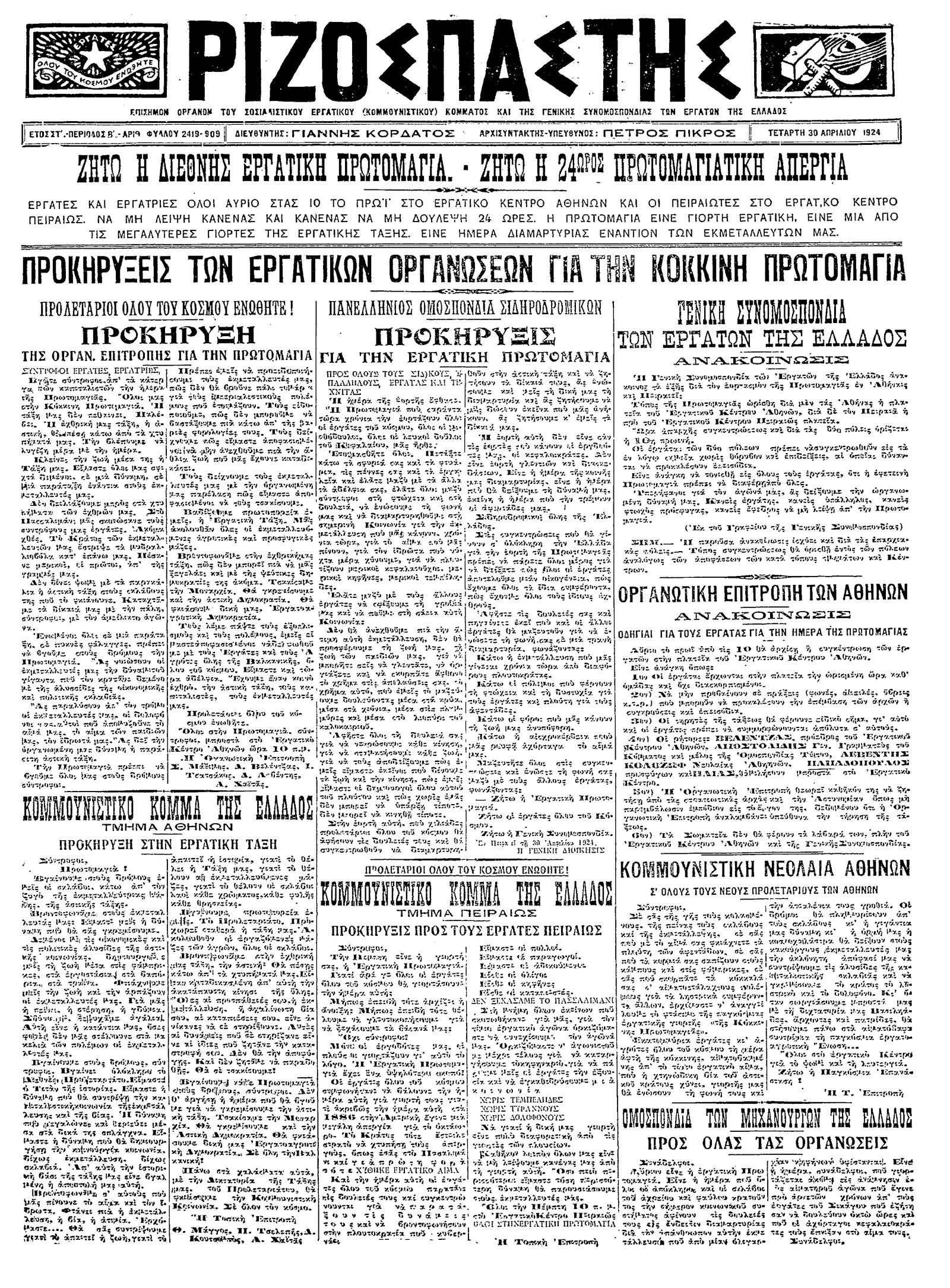 Ριζοσπάστης 30/04/1924