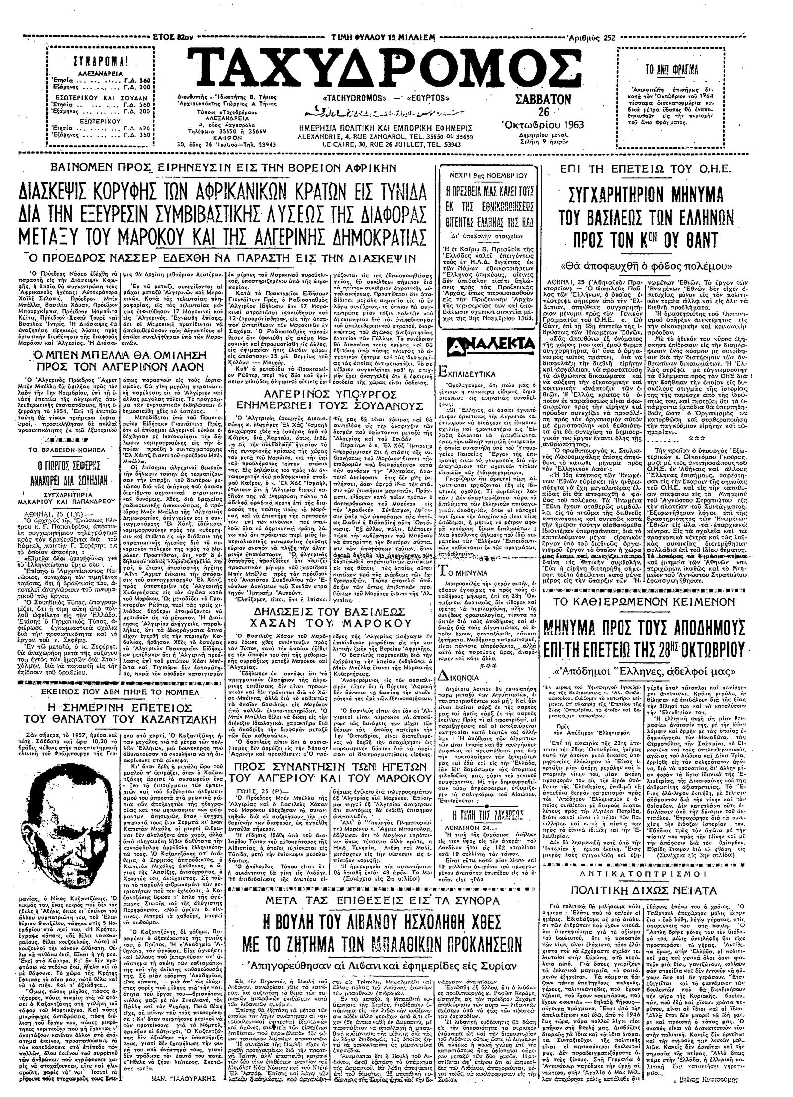 Ταχυδρόμος 26/10/1963