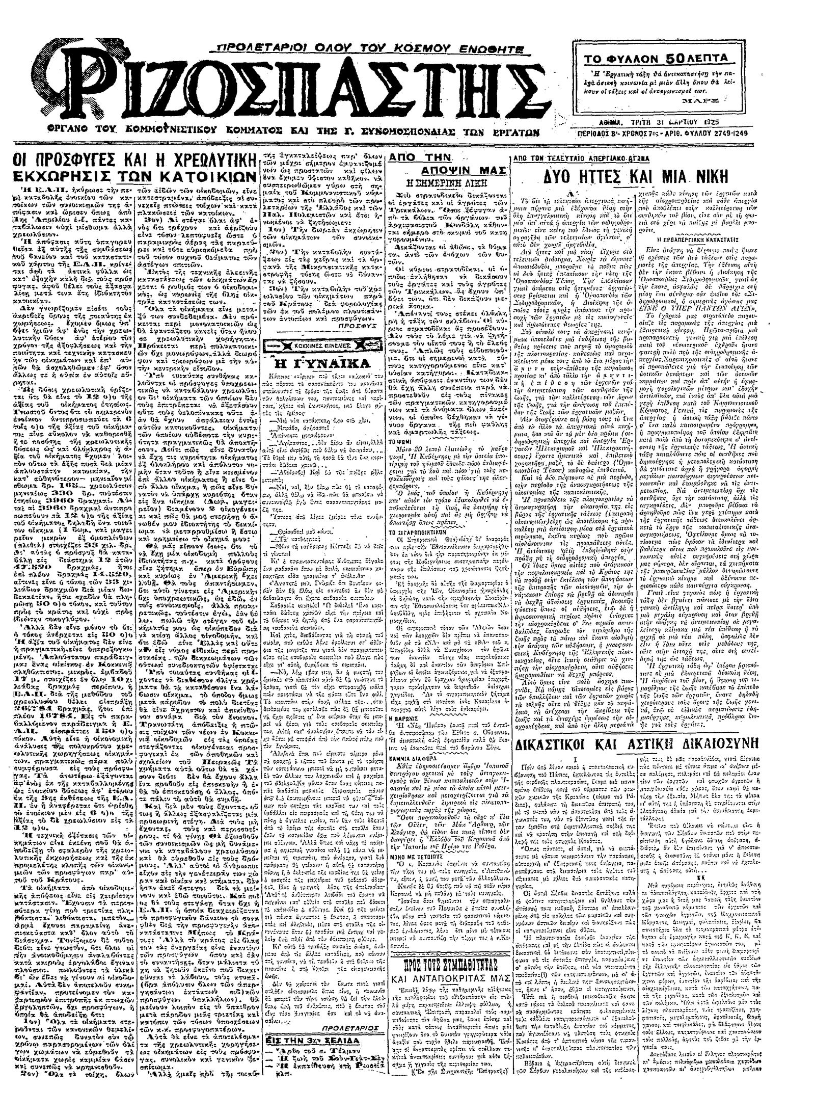 Ριζοσπάστης 31/03/1925
