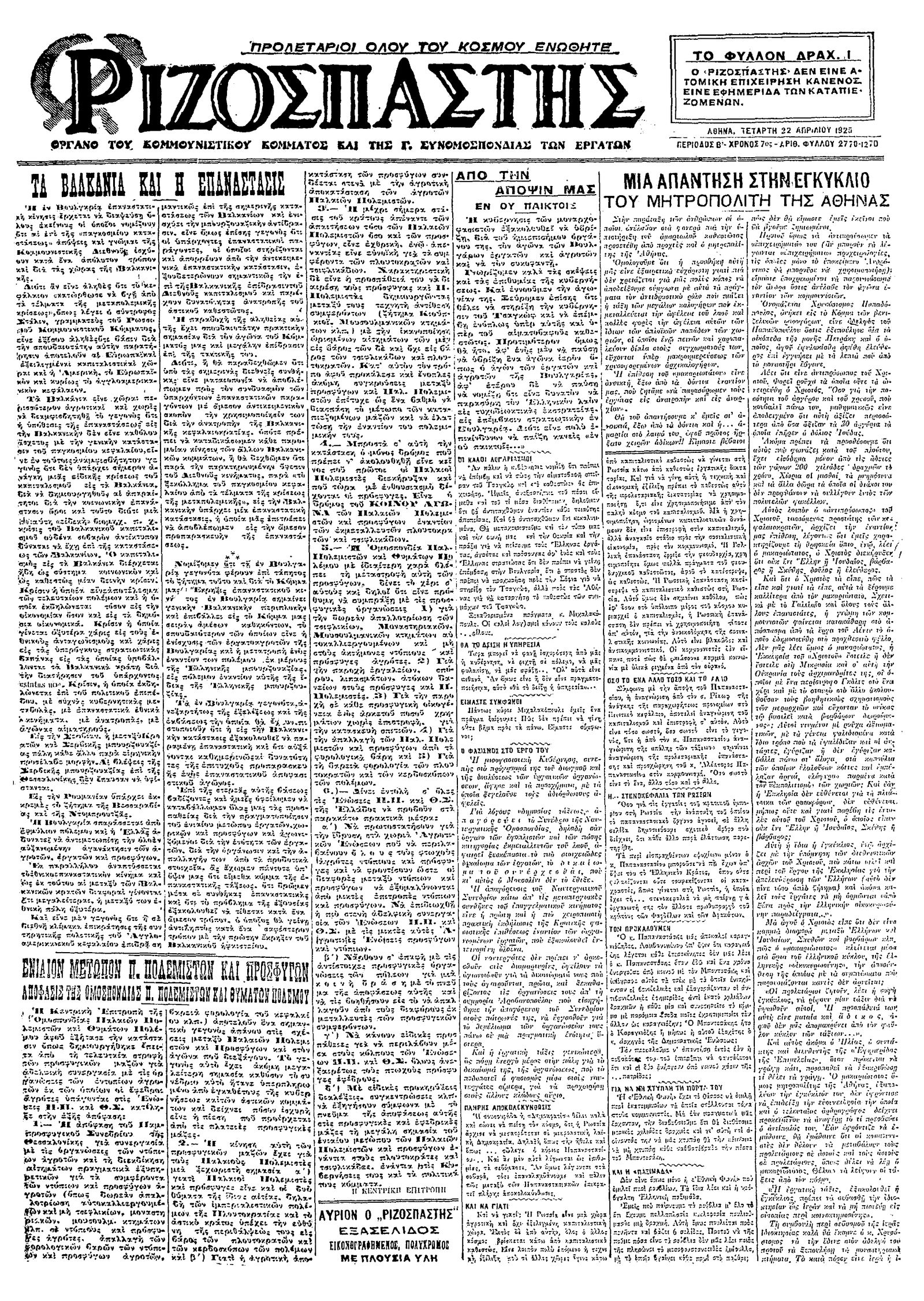 Ριζοσπάστης 22/04/1925