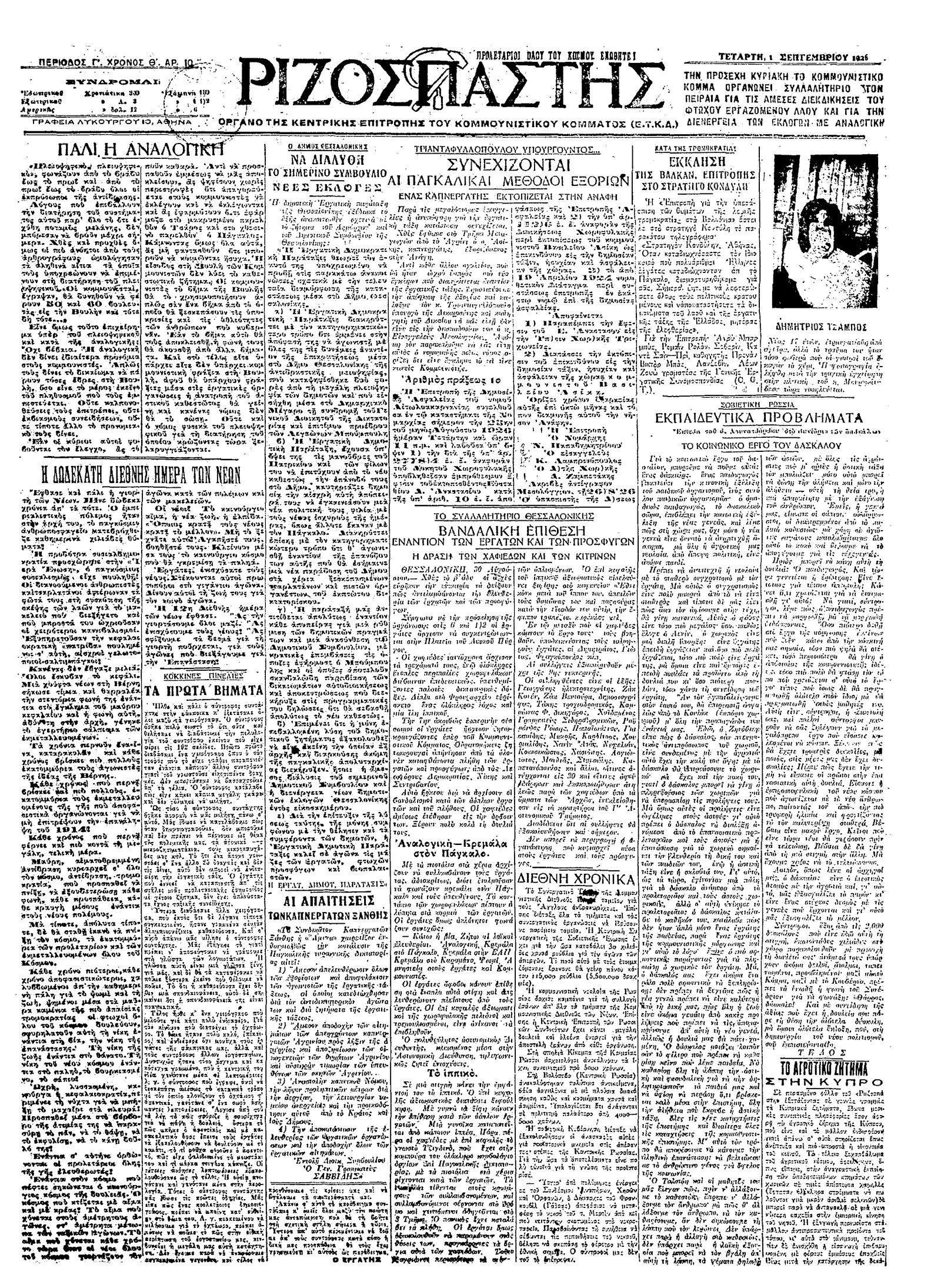 Ριζοσπάστης 01/09/1926