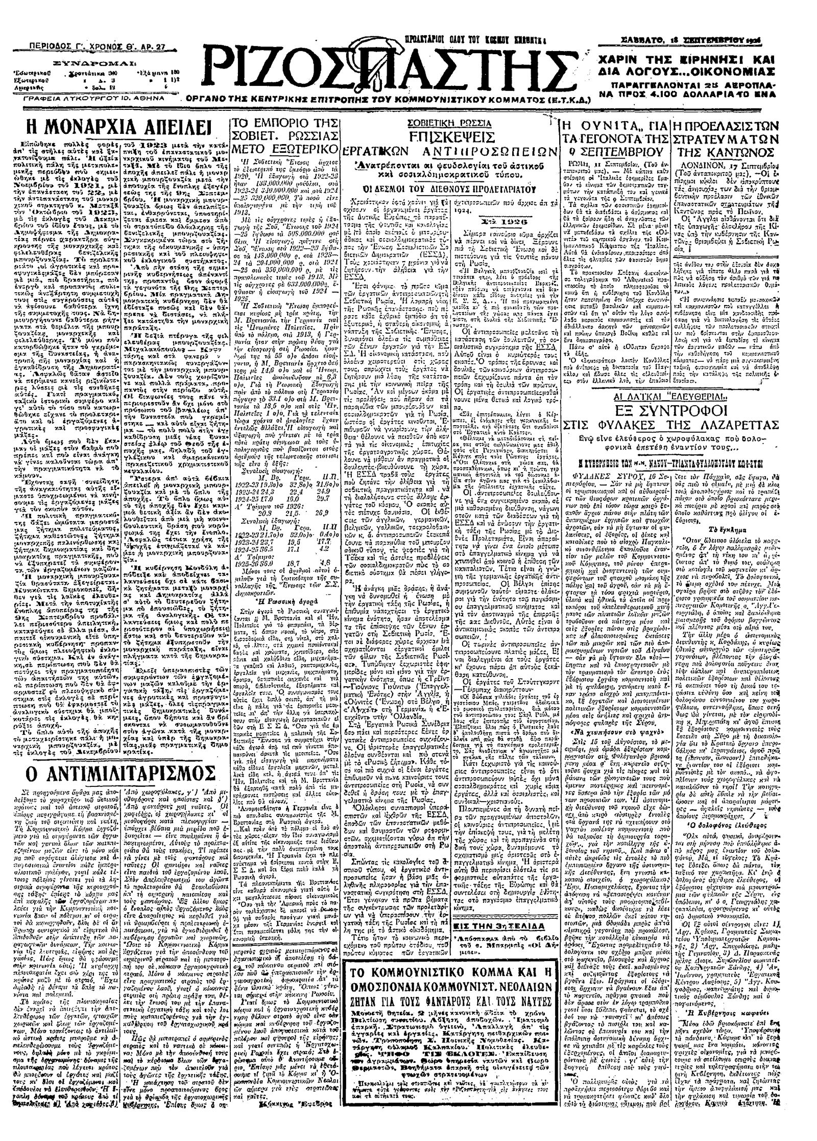 Ριζοσπάστης 18/09/1926