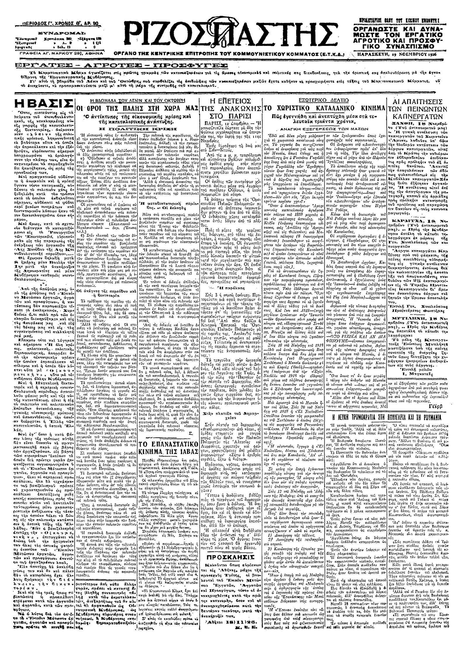 Ριζοσπάστης 19/11/1926
