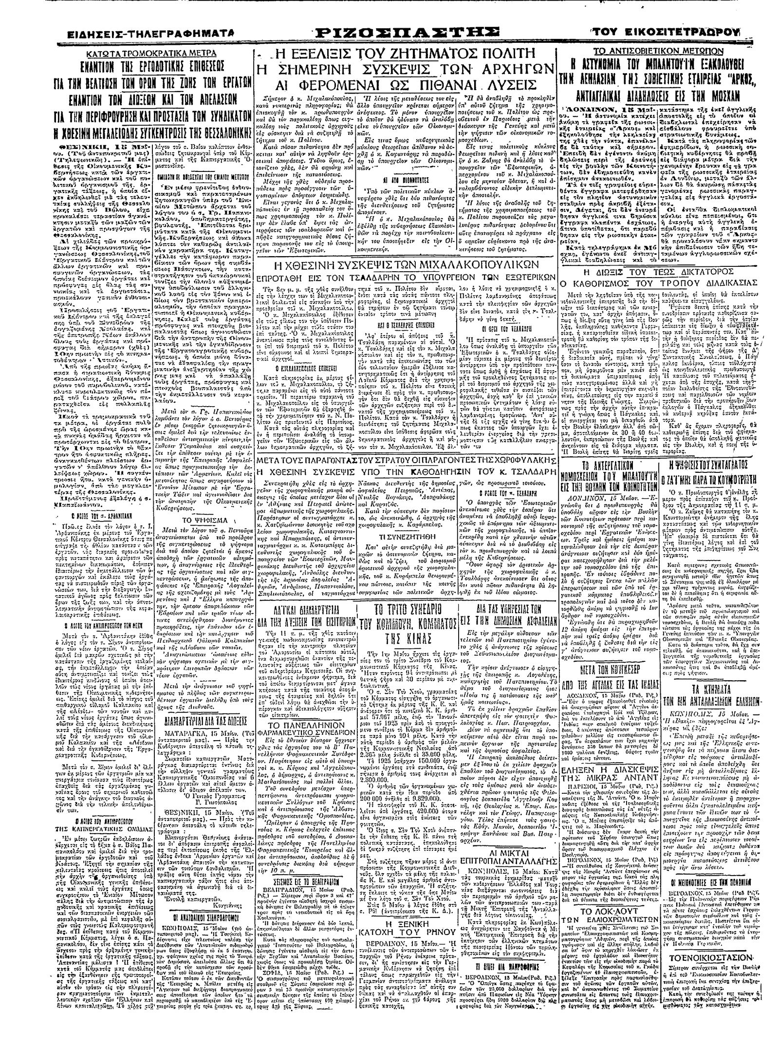 Ριζοσπάστης 16/05/1927