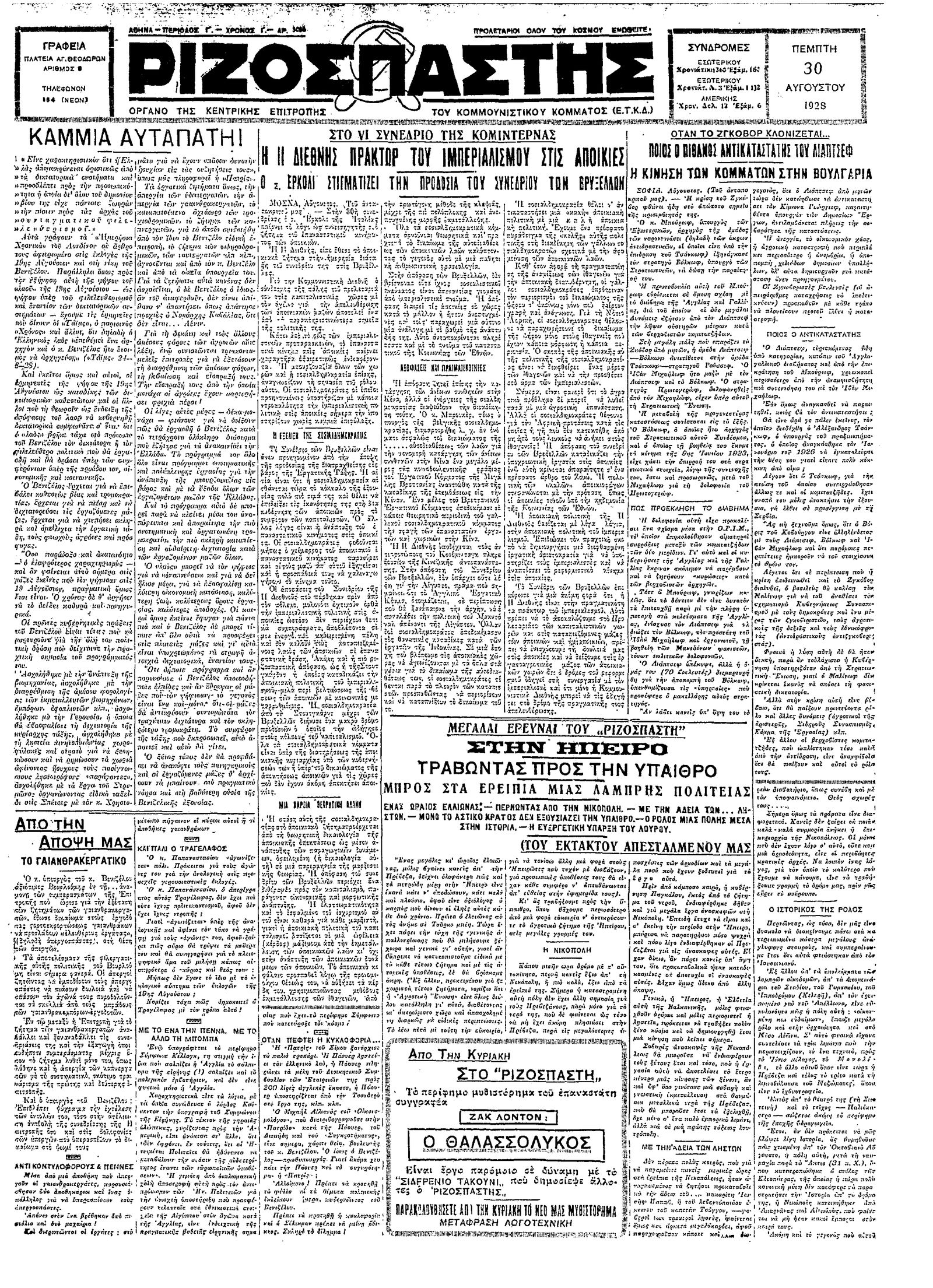 Ριζοσπάστης 30/08/1928