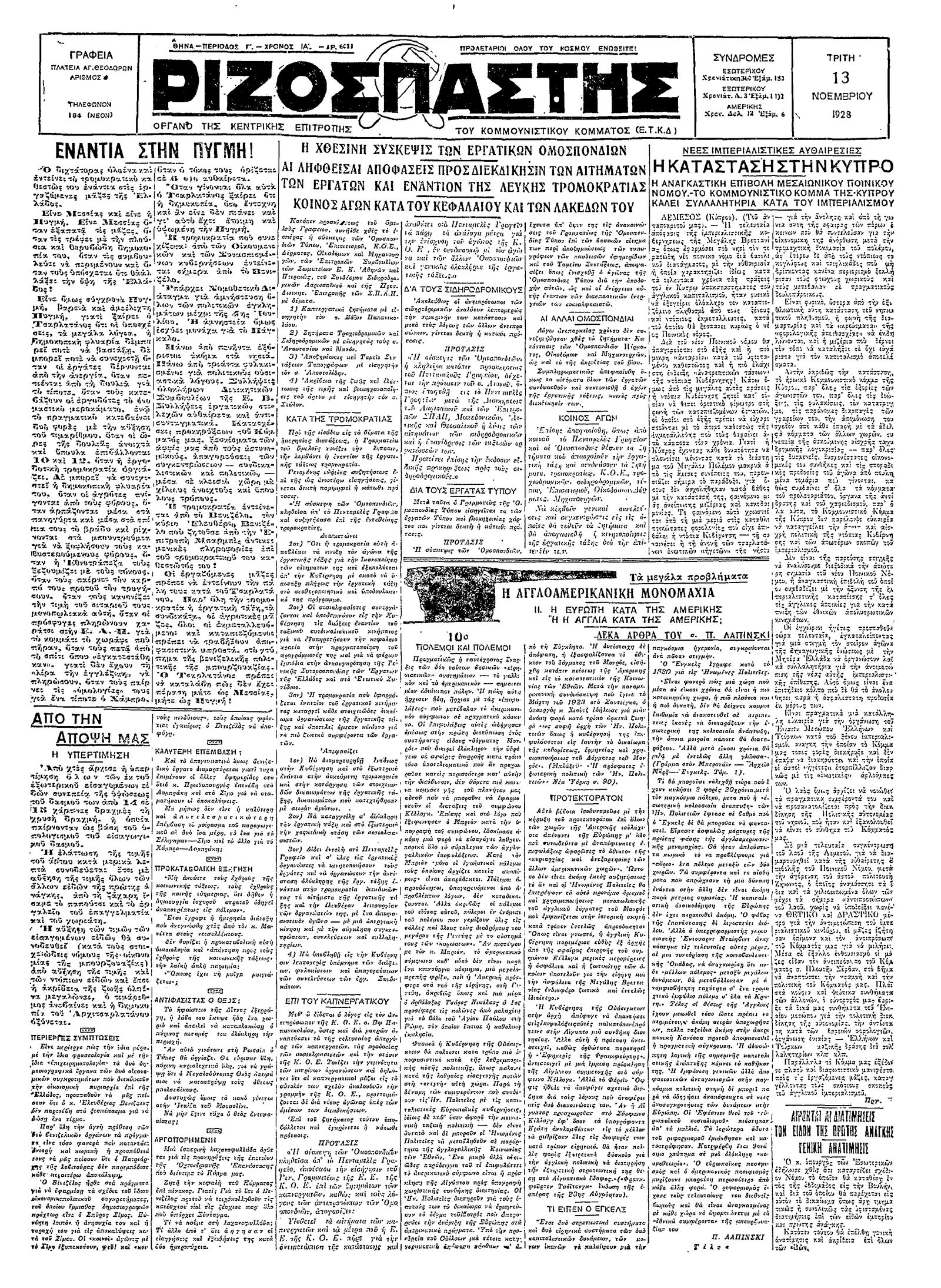 Ριζοσπάστης 13/11/1928