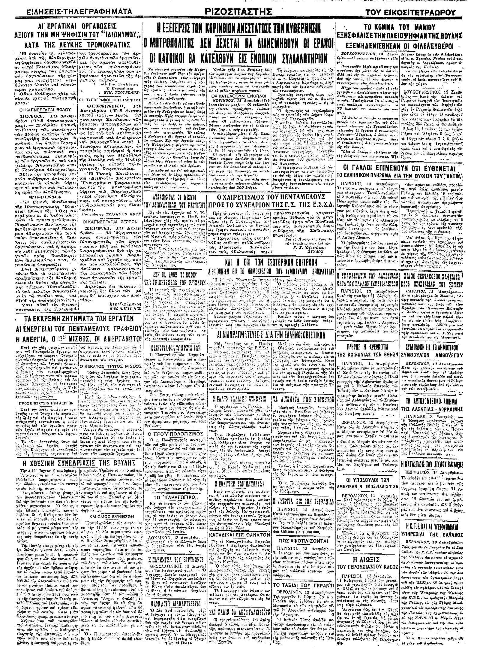 Ριζοσπάστης 14/12/1928