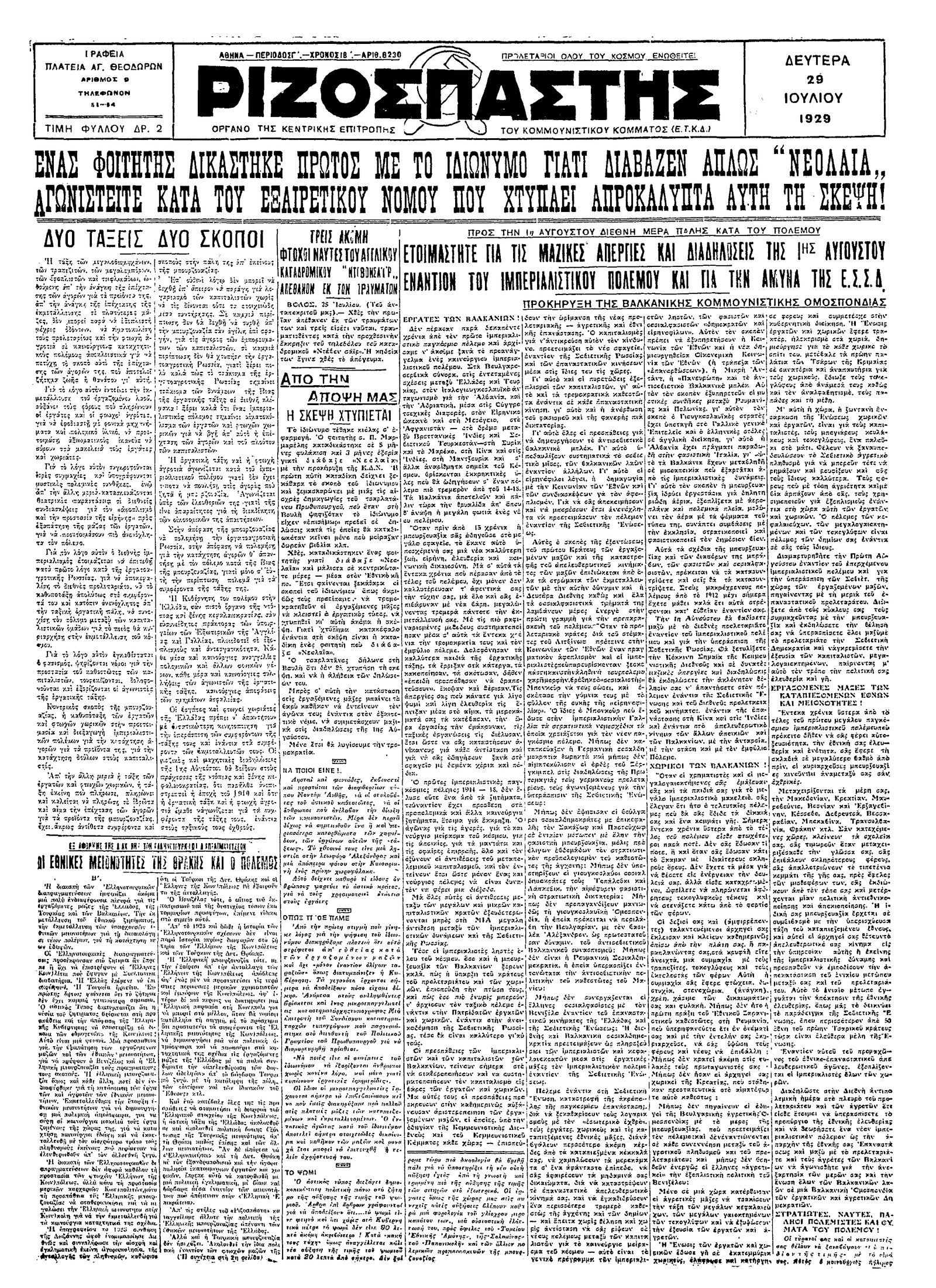 Ριζοσπάστης 29/07/1929