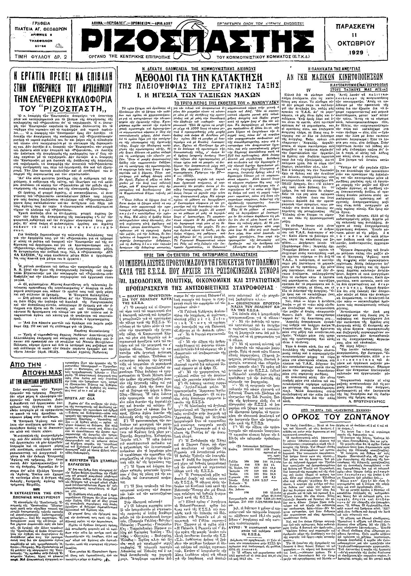 Ριζοσπάστης 11/10/1929