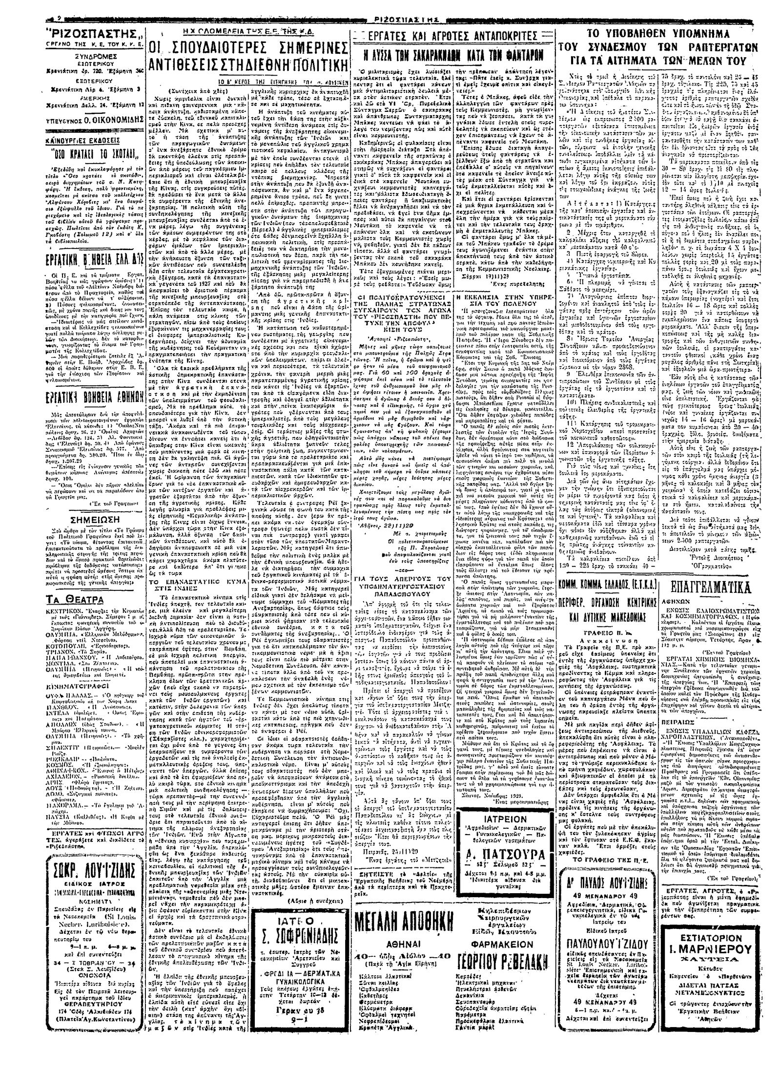 Ριζοσπάστης 27/11/1929