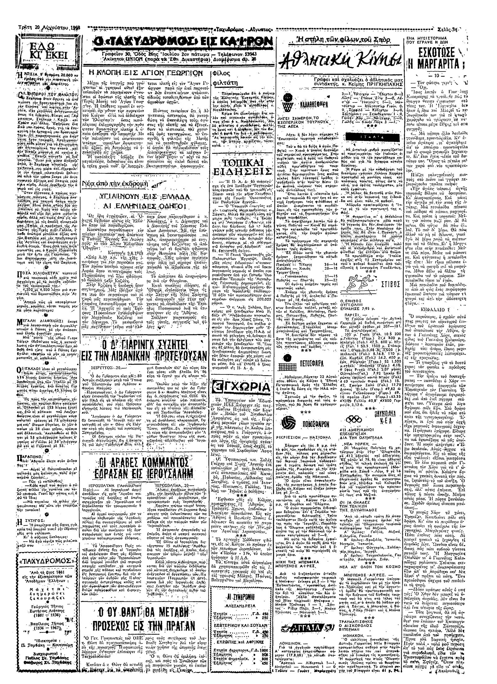 Ταχυδρόμος 20/08/1968