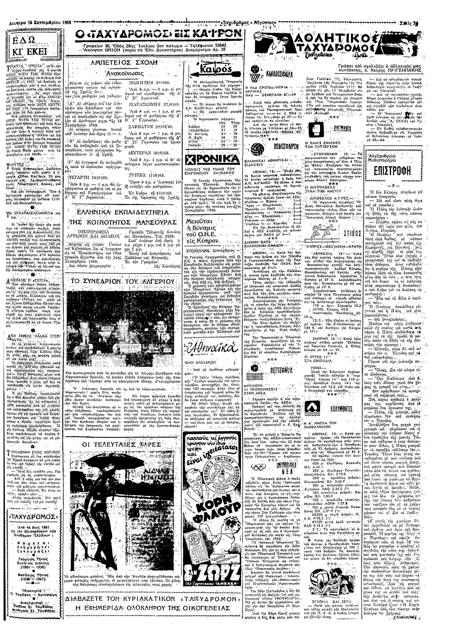 Ταχυδρόμος 16/09/1968