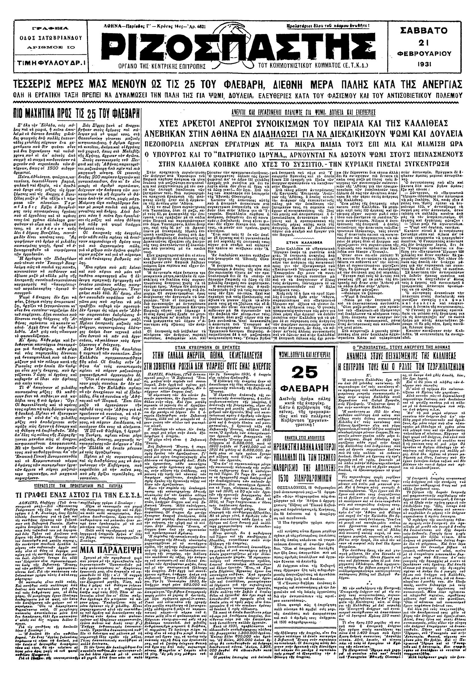Ριζοσπάστης 21/02/1931