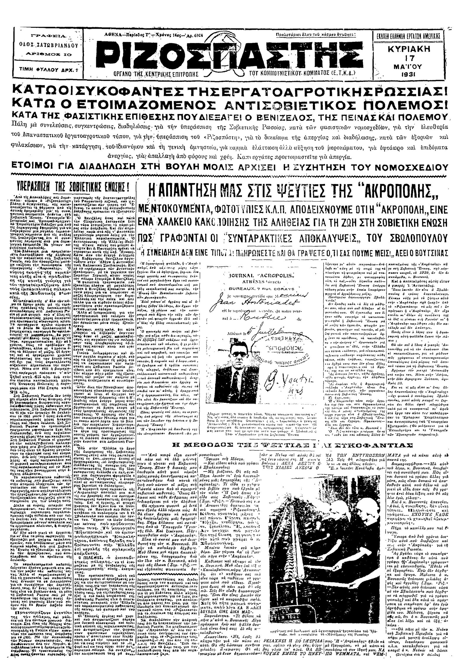 Ριζοσπάστης 17/05/1931