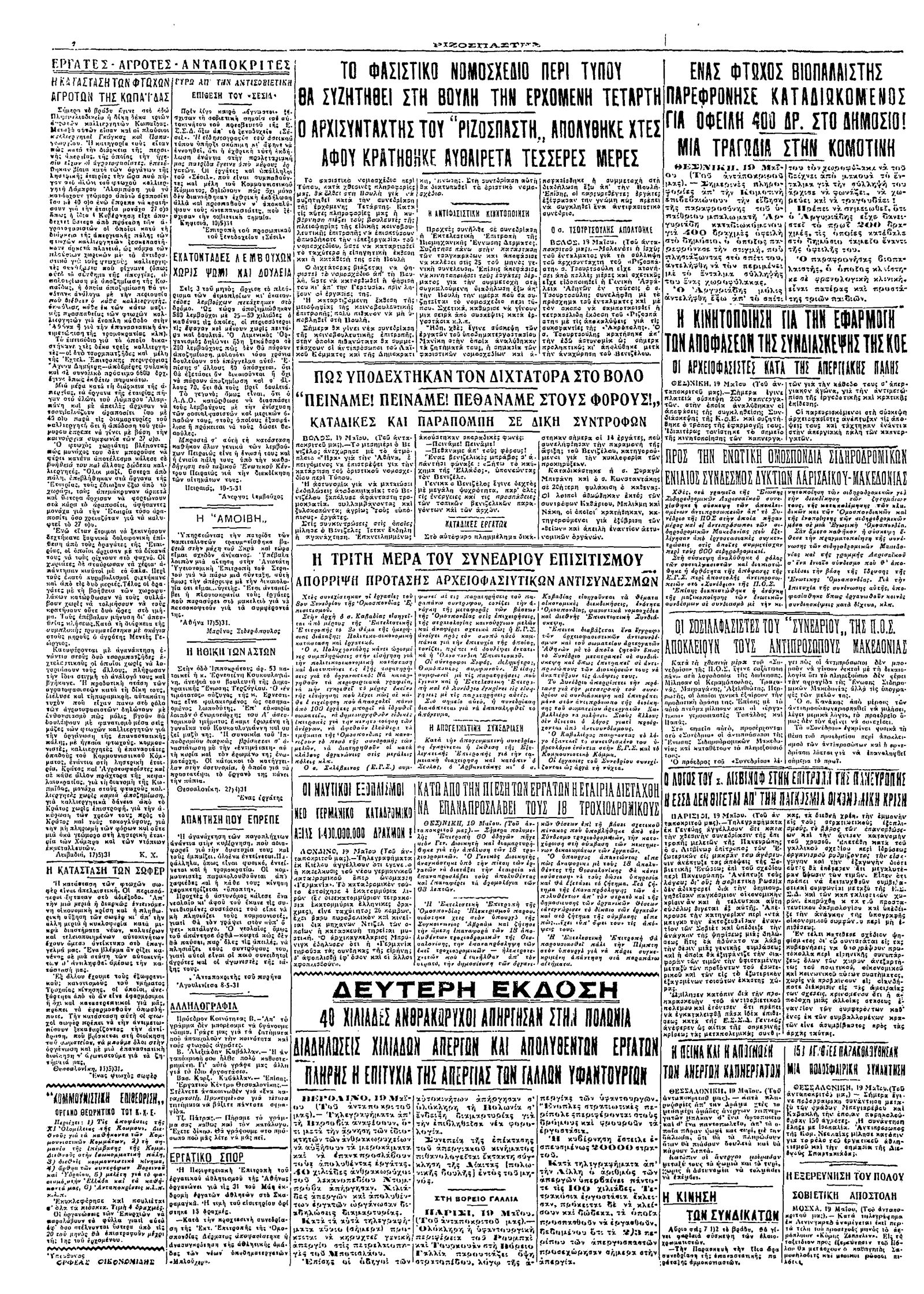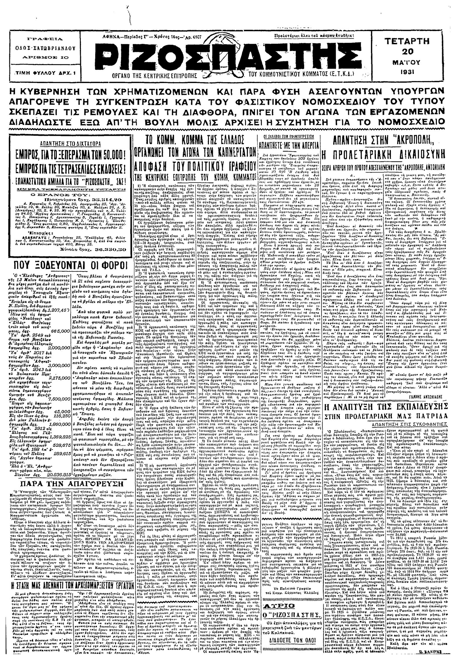 Ριζοσπάστης 20/05/1931