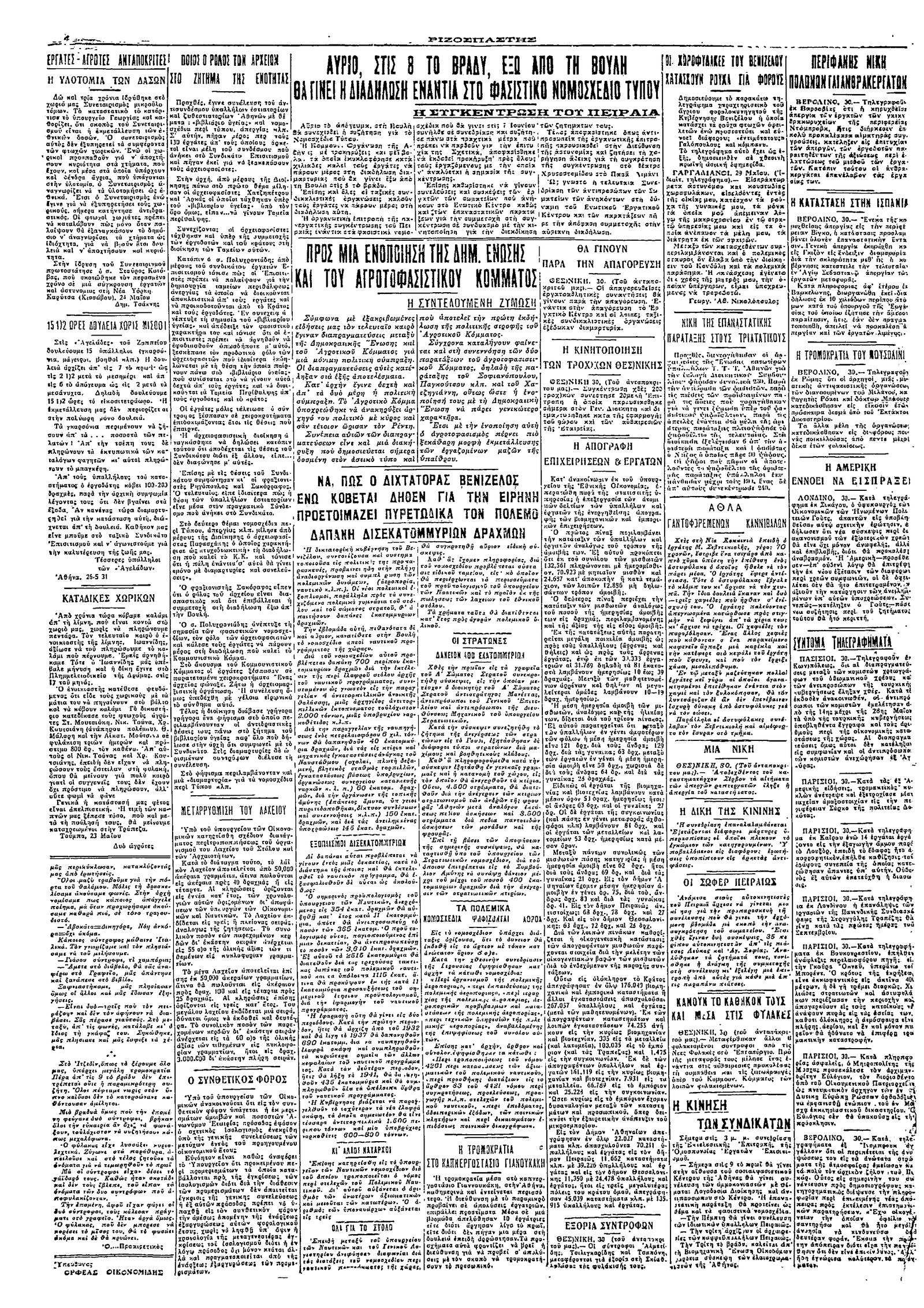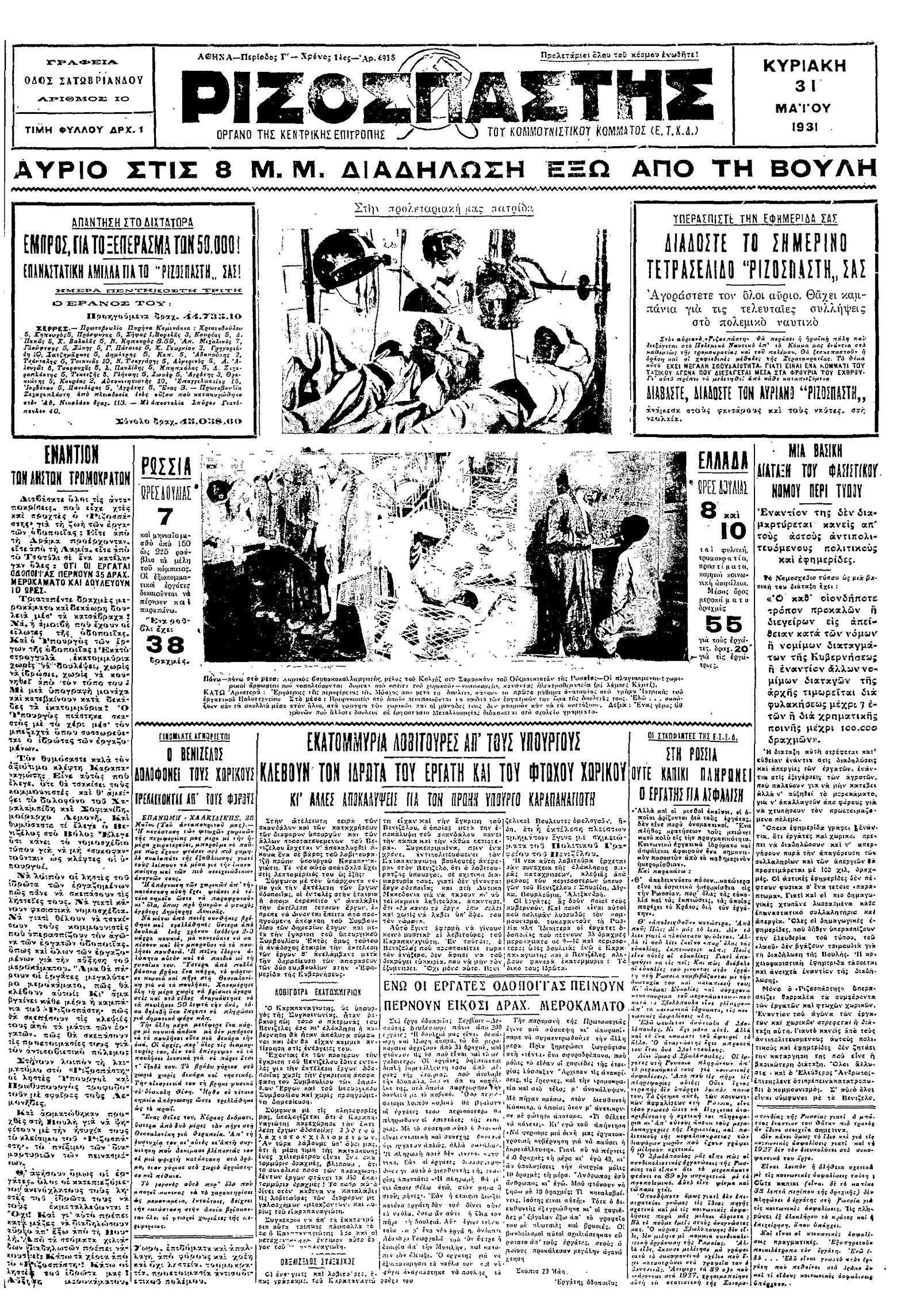 Ριζοσπάστης 31/05/1931
