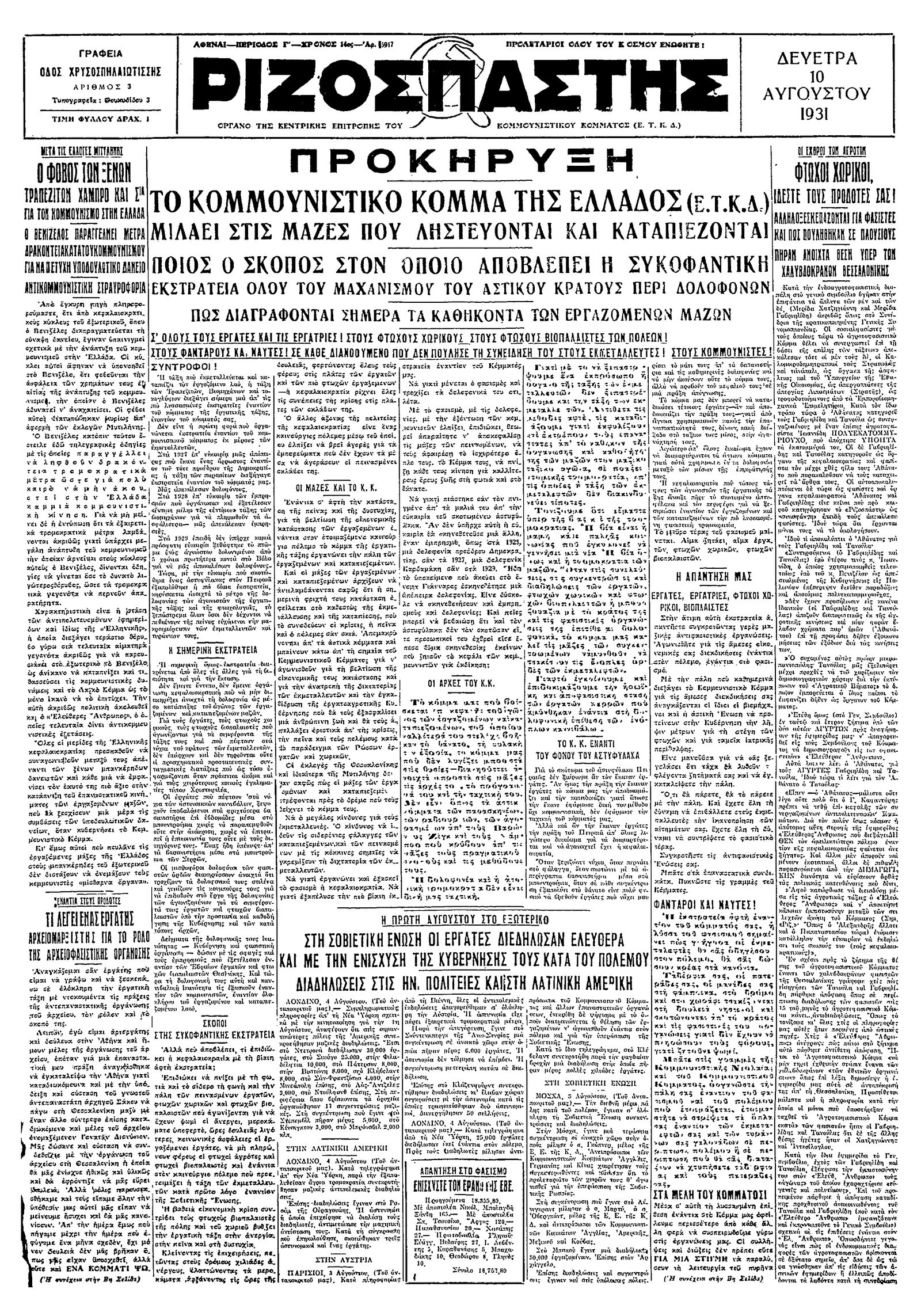 Ριζοσπάστης 10/08/1931