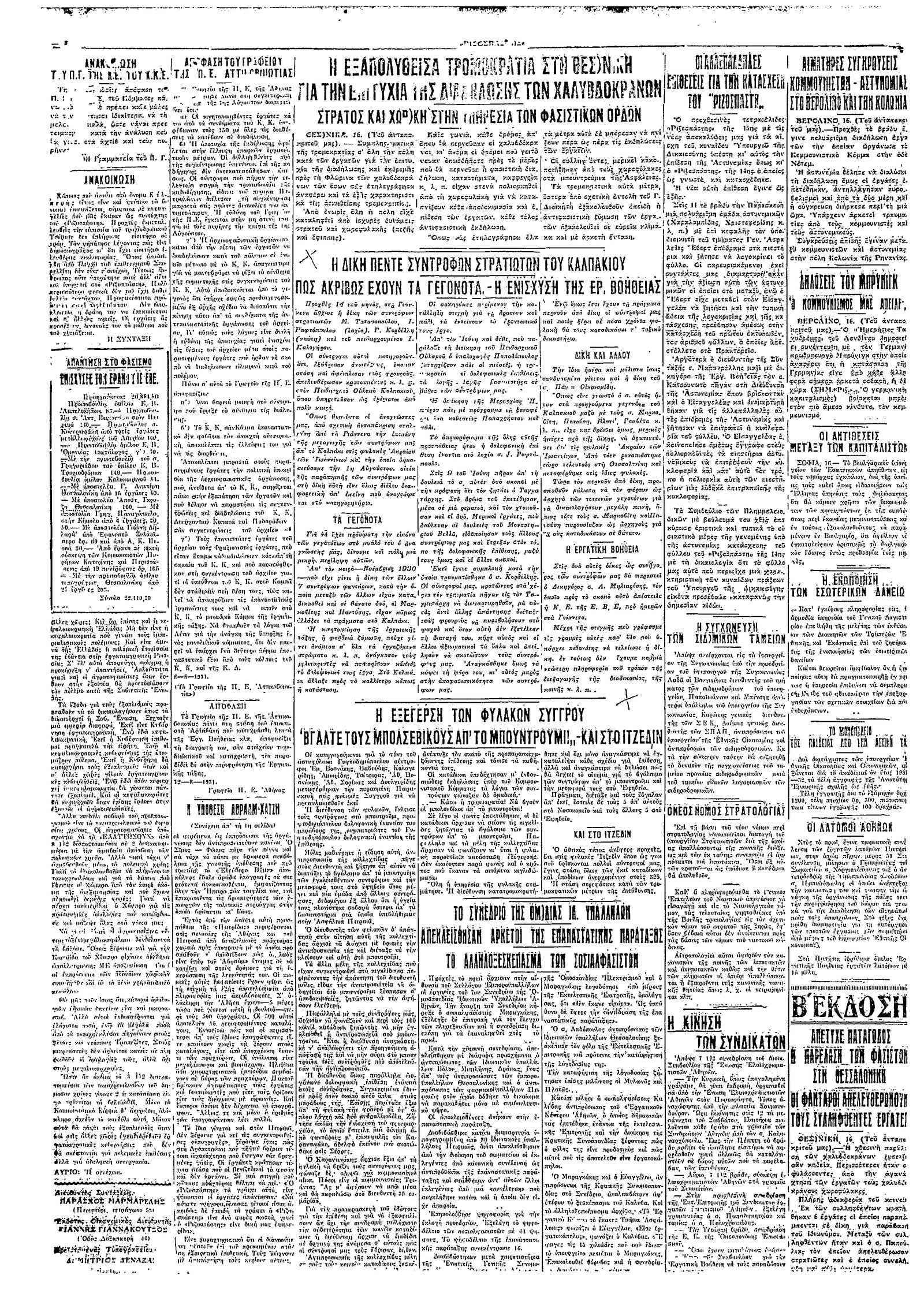 Ριζοσπάστης 17/08/1931