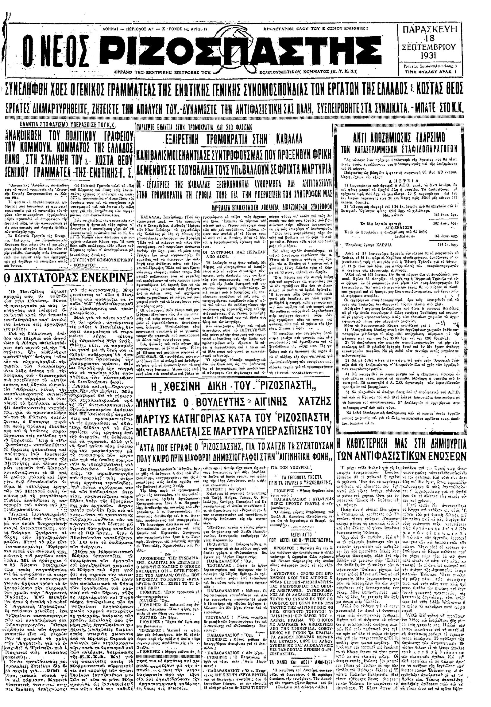 Ριζοσπάστης 18/09/1931
