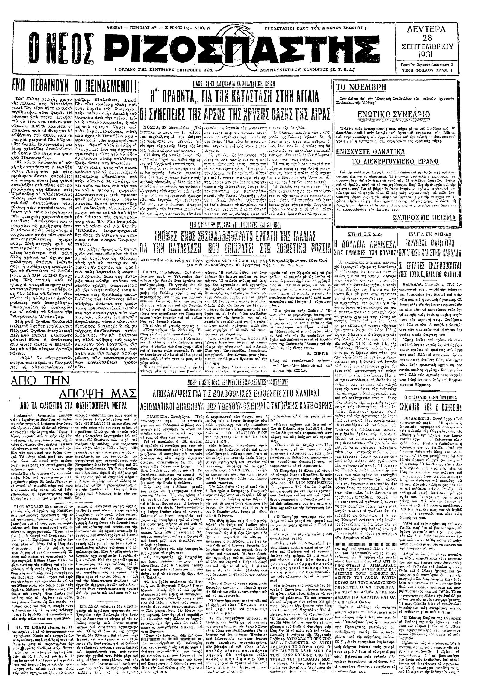 Ριζοσπάστης 28/09/1931