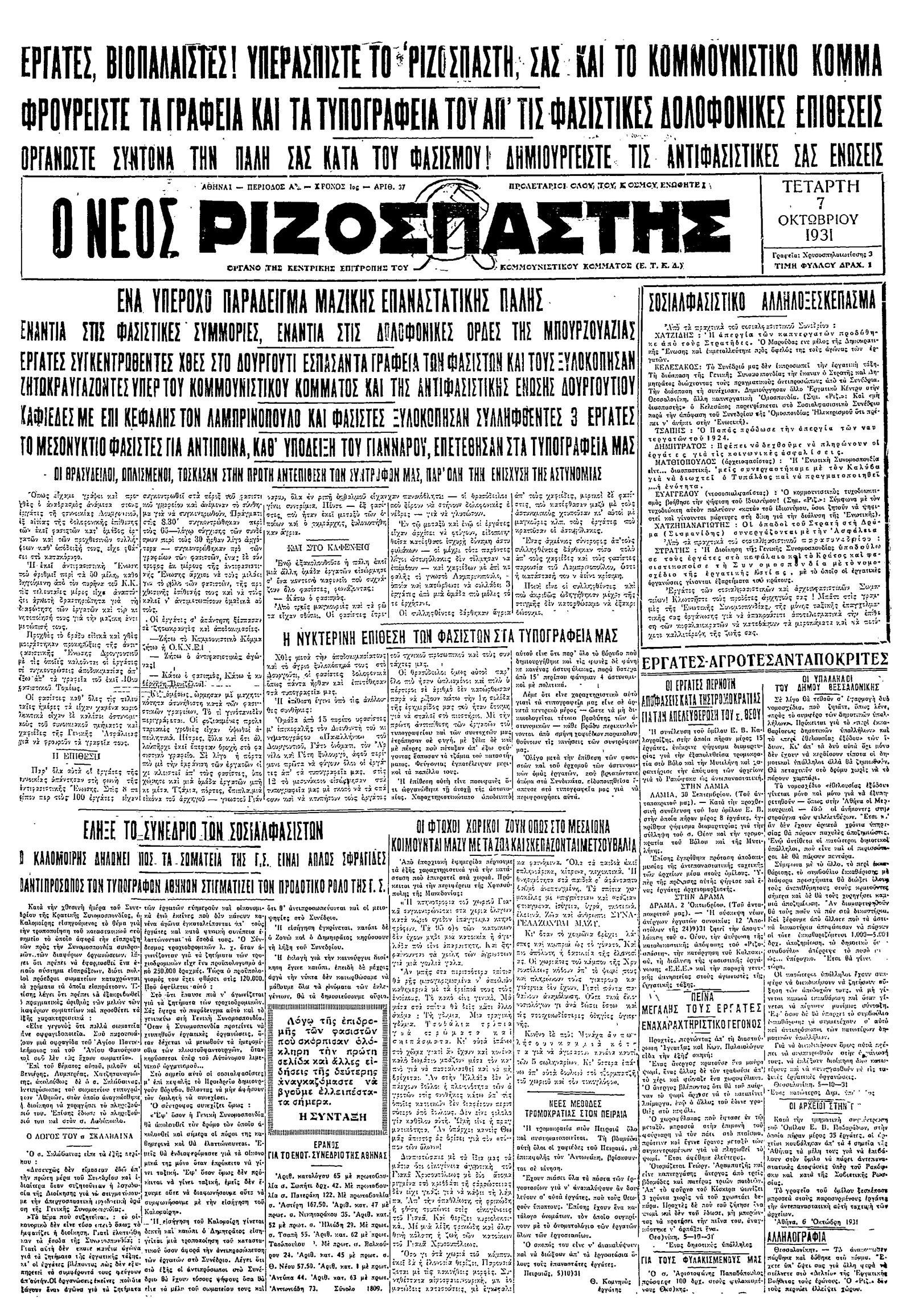 Ριζοσπάστης 07/10/1931