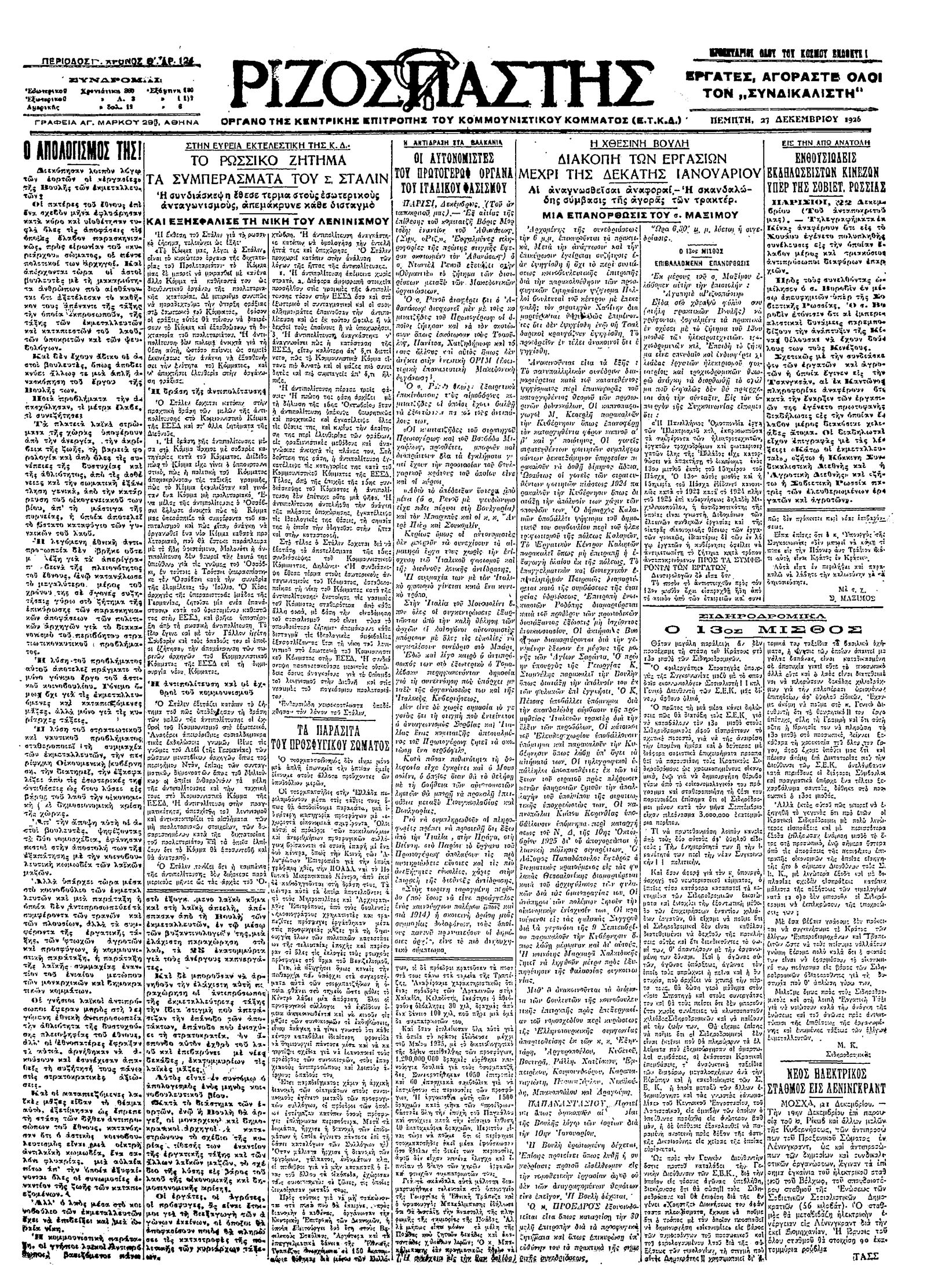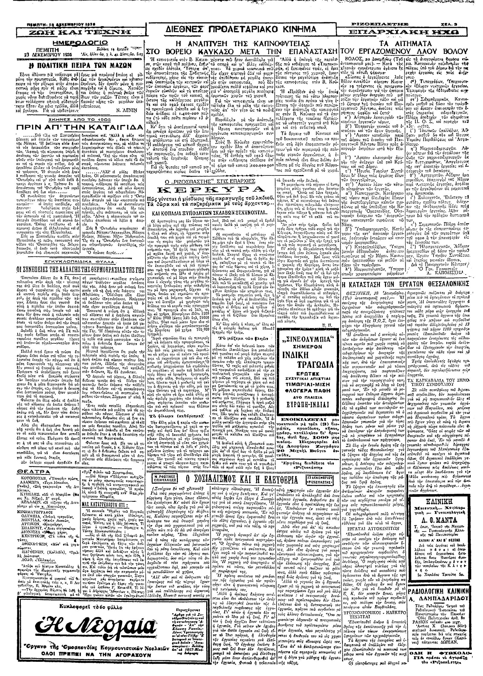 Ριζοσπάστης 23/12/1926