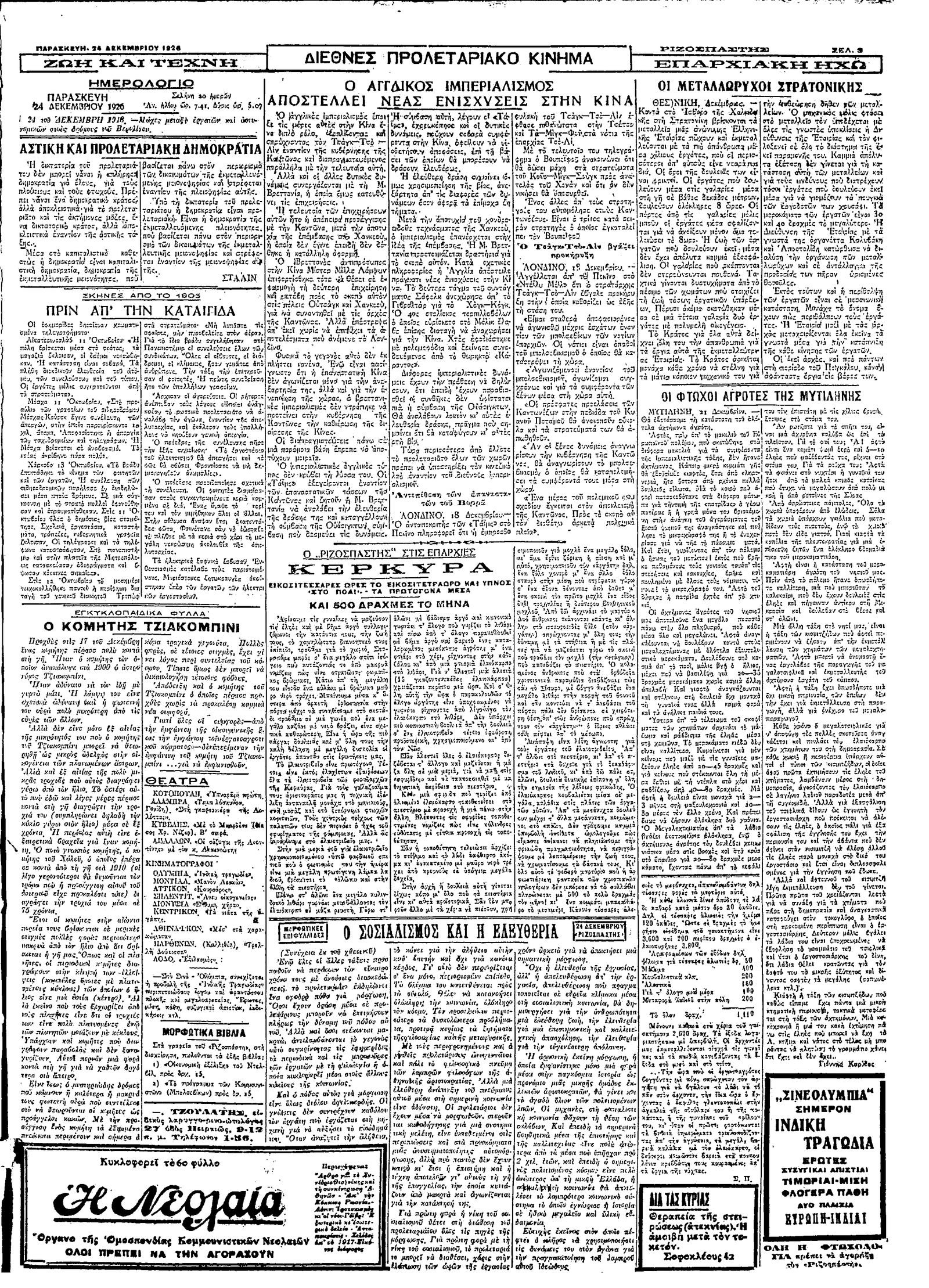 Ριζοσπάστης 24/12/1926