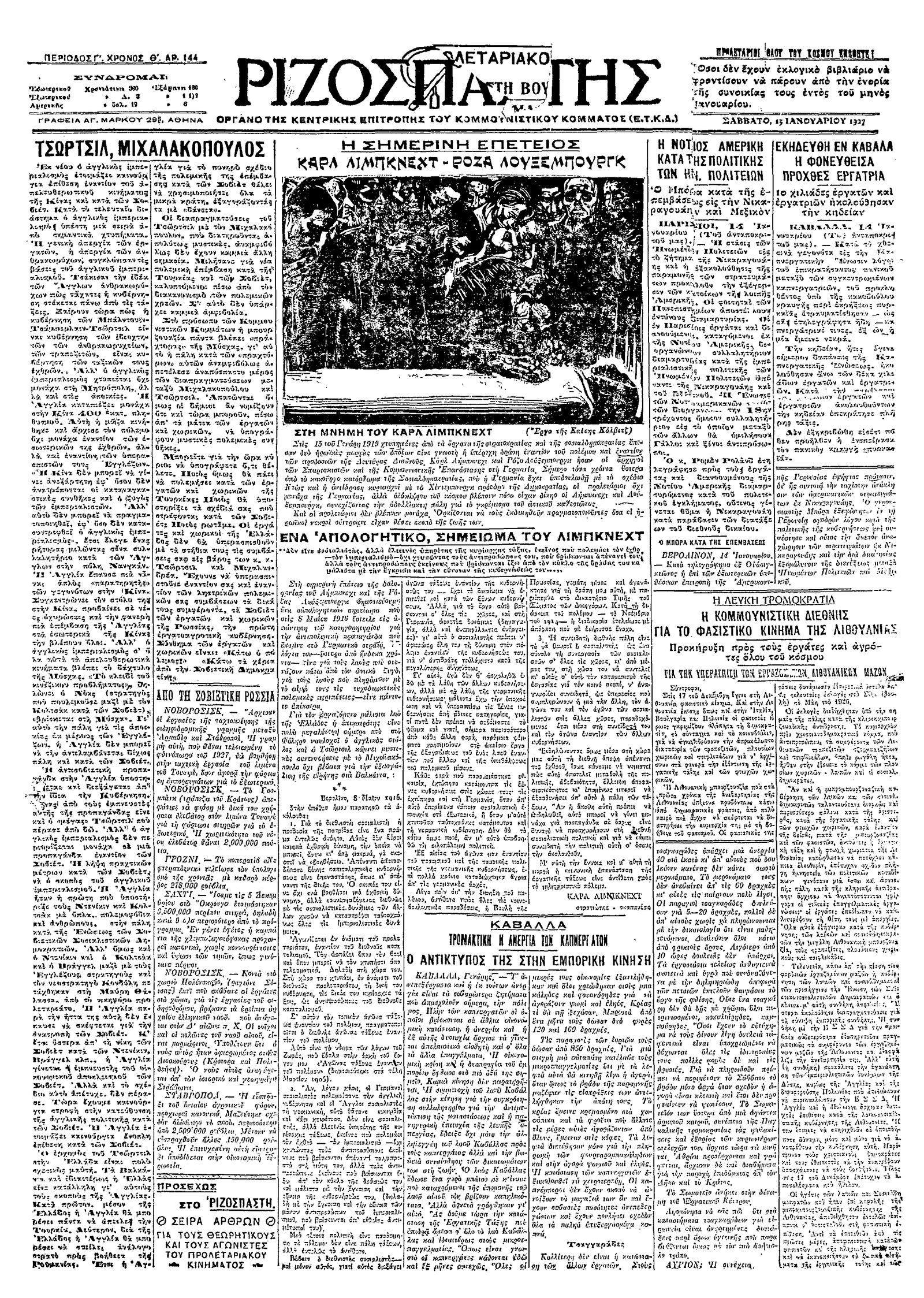 Ριζοσπάστης 15/01/1927