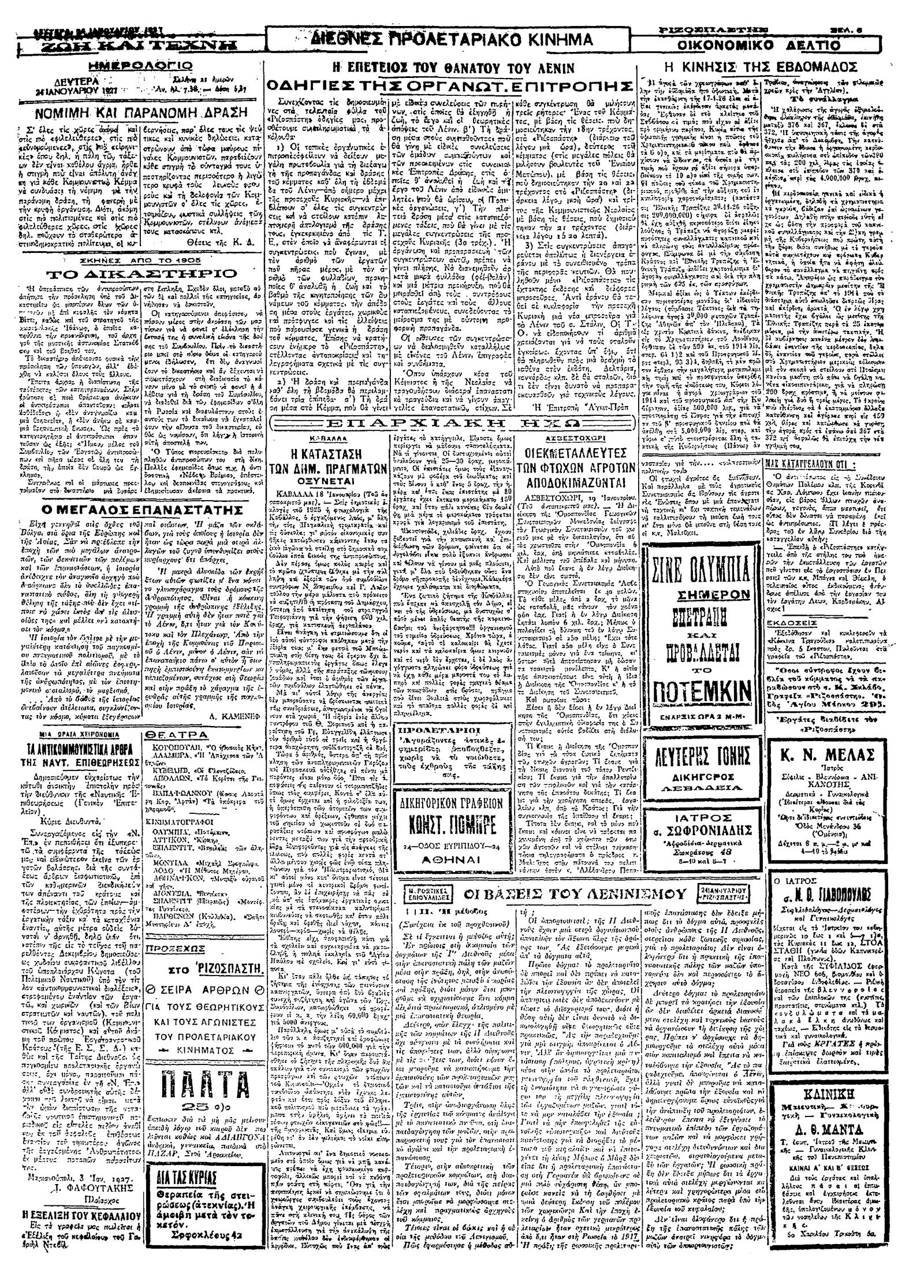 Ριζοσπάστης 24/01/1927