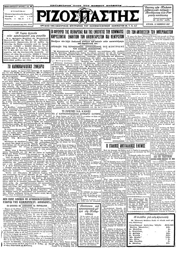 Ριζοσπάστης 27/11/1927